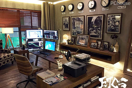 安迪智商非常高,能同时兼顾很多事情。所以在环境的设计上,书房墙上会有六个时区的时钟,办公桌上的四台显示器,包括全球各股市指数、最新全球资讯、甚至是欢乐颂楼道监控一直在滚动,这些都是反映安迪的高智商及高效率的生活状态。