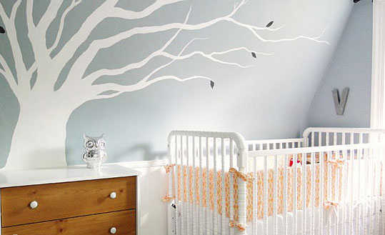 视觉效果:偏卡通的图案适合摆放在儿童房里,简单操作却充满童趣的手绘为室内墙面增色不少,改变了原本墙面单调印象,飘逸的树枝也符合孩子无穷无尽发散开来的想象力。