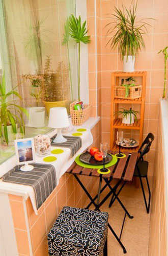 小编的话:暖色系的阳台空间让人能够感受到整个空间带来的浓浓暖意,利用阳台内部的隔断作为一个休闲台面使用,角落里的原木色绿植架可以摆放上几盆小型绿植在其中,正方瓷砖让这个阳台显得简洁干净,把自家阳台这样装修看上去倒也是种不错的选择哦。