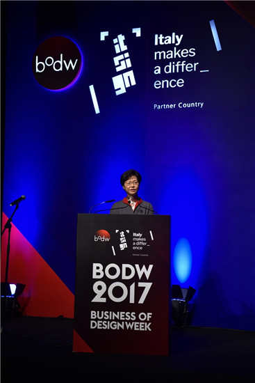 亚洲年度瞩目盛事,全面探索设计、创新及品牌趋势的设计营商周(Business of Design Week,BODW),今天上午于香港会议展览中心正式揭幕。本次开幕典礼出席的嘉宾包括香港特别行政区行政长官林郑月娥女士,意大利驻香港及澳门总领事馆总领事Antonello De Riu先生,商务及经济发展局局长邱腾华先生,香港设计中心(Hong Kong Design Centre,HKDC)主席严志明教授,JP、设计营商周督导委员会主席罗仲荣先生,香港贸易发展局总裁方舜文小姐,意大利商务专员公署商务专员Michele Scuotto先生及“创意香港”总监曾昭学先生共同见证第十六届设计营商周的正式揭幕。