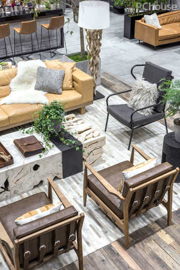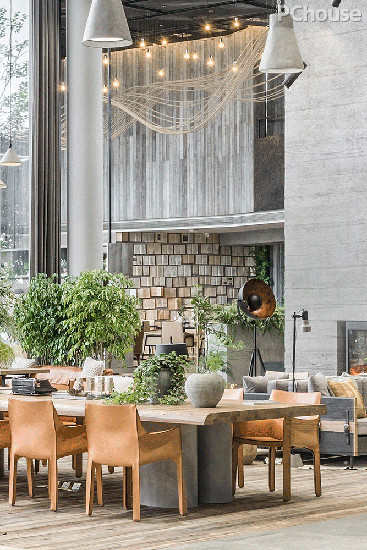 青翠的树木、蕨类,手工编织的毛线靠枕,藤木编制的躺椅……这些自然的生态美纳入空间中,给躁动喧闹的现实生活以新鲜空气,将纷繁的环境变得纯粹与永恒。
