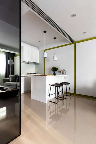 编辑点评:公寓省去了餐厅的设计,将其与吧台合为一体,对于只有夫妇二人的家庭来说一切刚刚好,而且还能为公寓腾出更多可用空间。