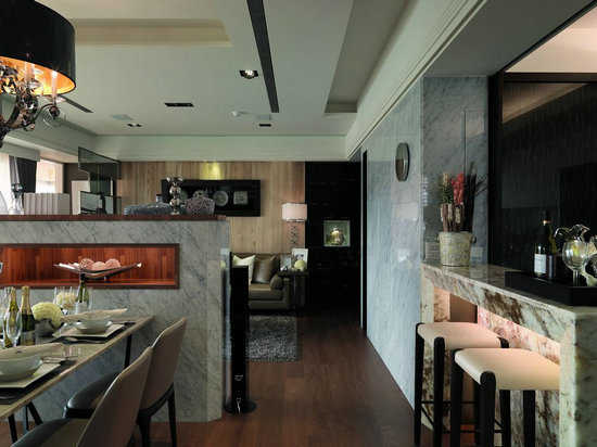编辑点评:设计师高志豪细腻的运作及铺排,他讲究素材多元的使用,展现独有的空间美学,演绎女屋主所希冀的“品味”与“质感”,并内化心境将屋内打造为“接待所”的概念。