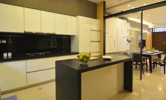 编辑点评:设计为L型操作区的开放式厨房,巧妙利用空间,将实用美观的餐桌与厨房紧密相连,形成一个开放式的烹饪就餐空间。
