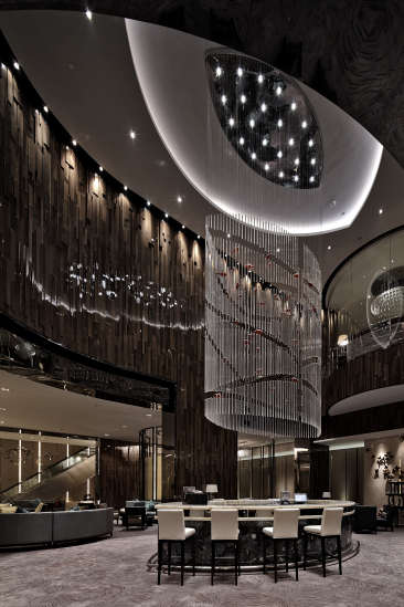 设计亮点分析:设计师的“以泉为源点,以水为元素”这个设计思路贯穿了酒店内外的每个空间。建筑、室内、二者和谐统一,处处凸显泉城文化中“水”的艺术底蕴。
