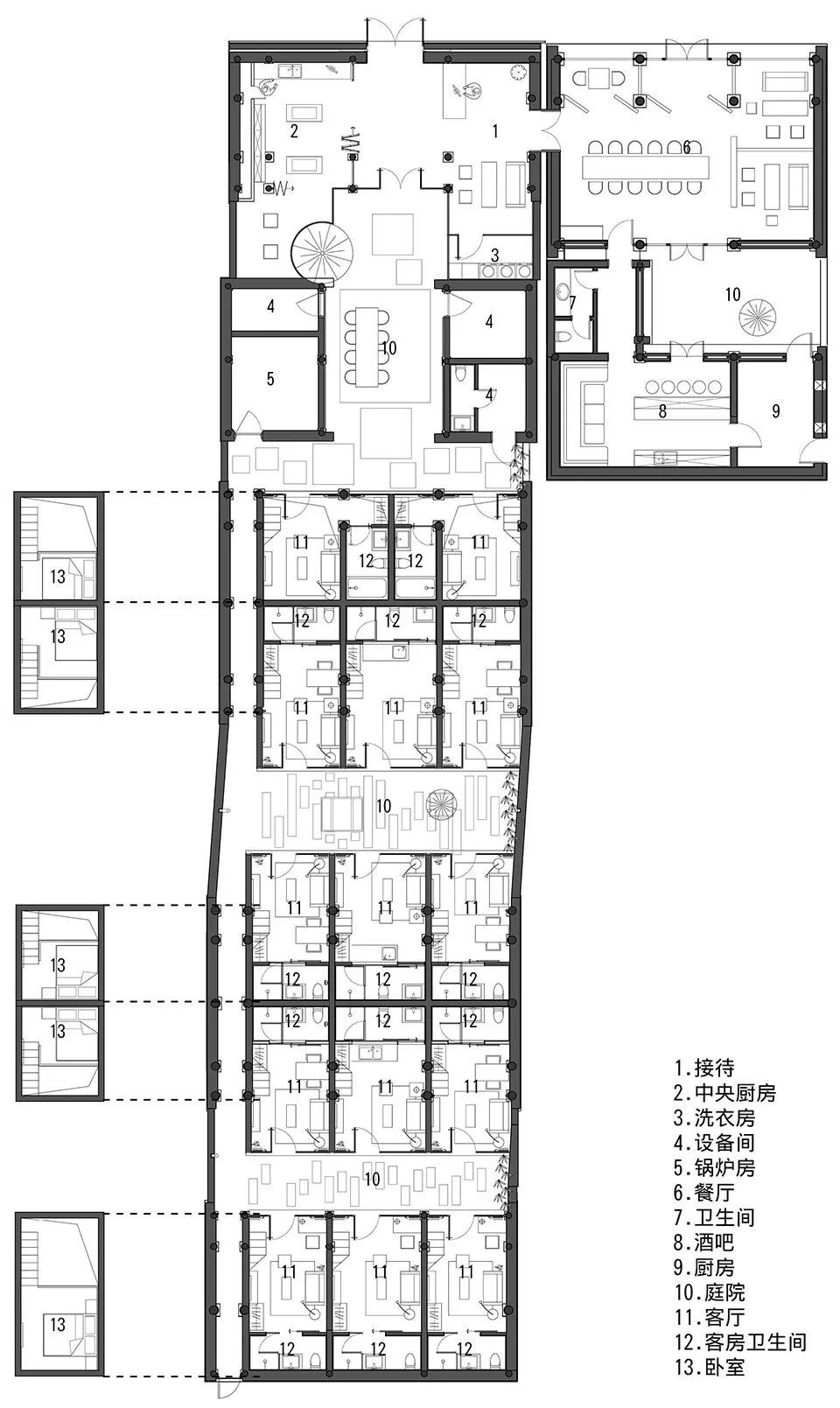 14间民宿,134个工位,200平以上的商业空间以及若干独立工作室、展厅、共享厨房等公共空间