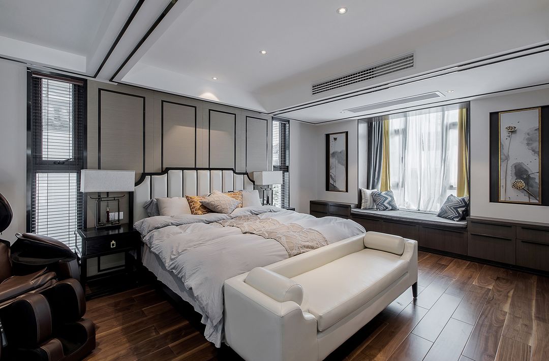 飘窗增加了许多的储物功能,两边的壁龛内挂了装饰画,起到装饰作用。