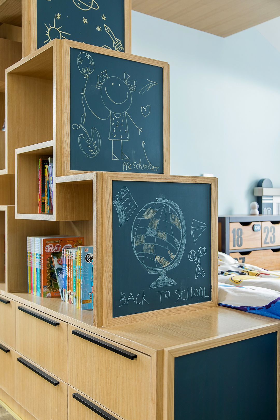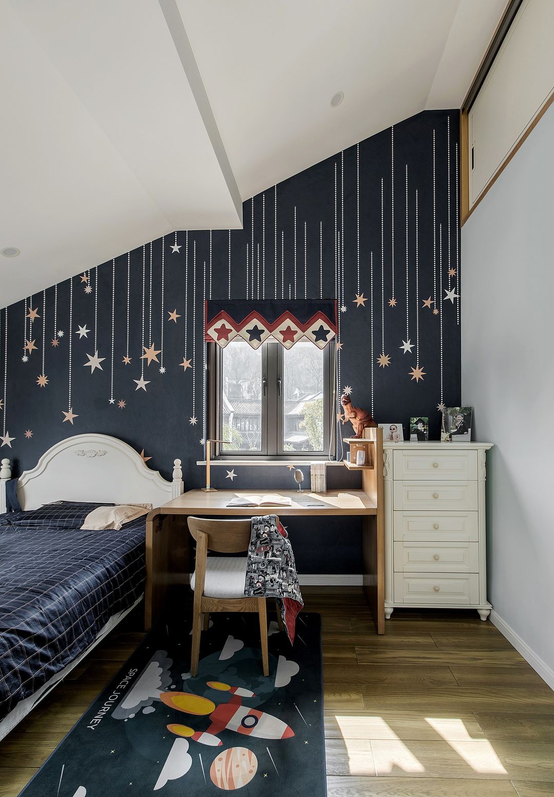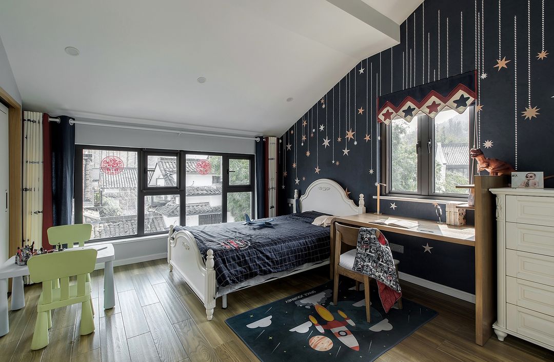 大儿子房间的家具都是老房子的家具,后期设计师重新设计利用了下,没想到整体还是非常协调的。