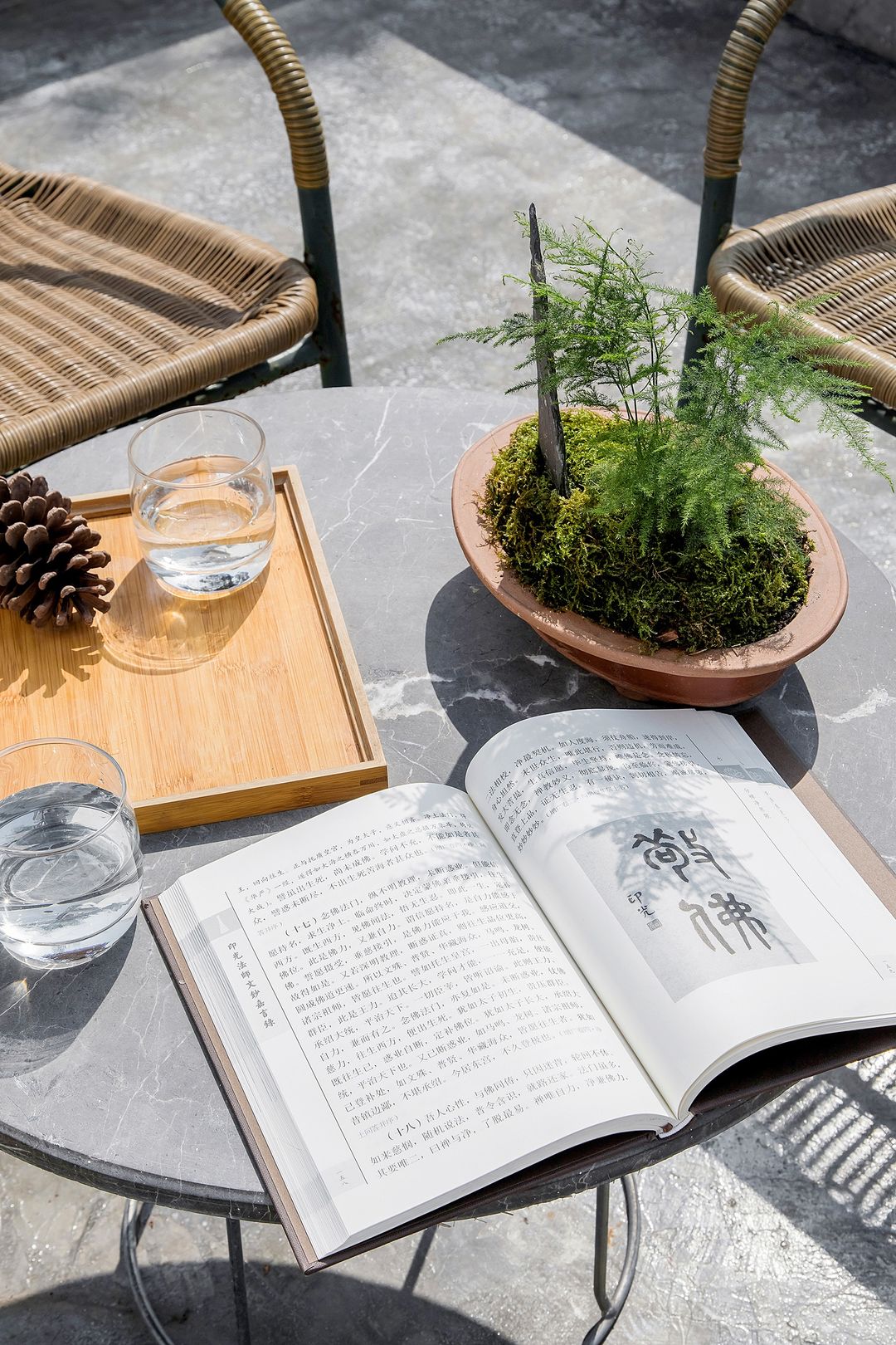 因为原始有一根地梁,设计师把客厅一侧整个抬高做了个自然的分隔,放上了太师椅,可以喝茶看雨聊天。。