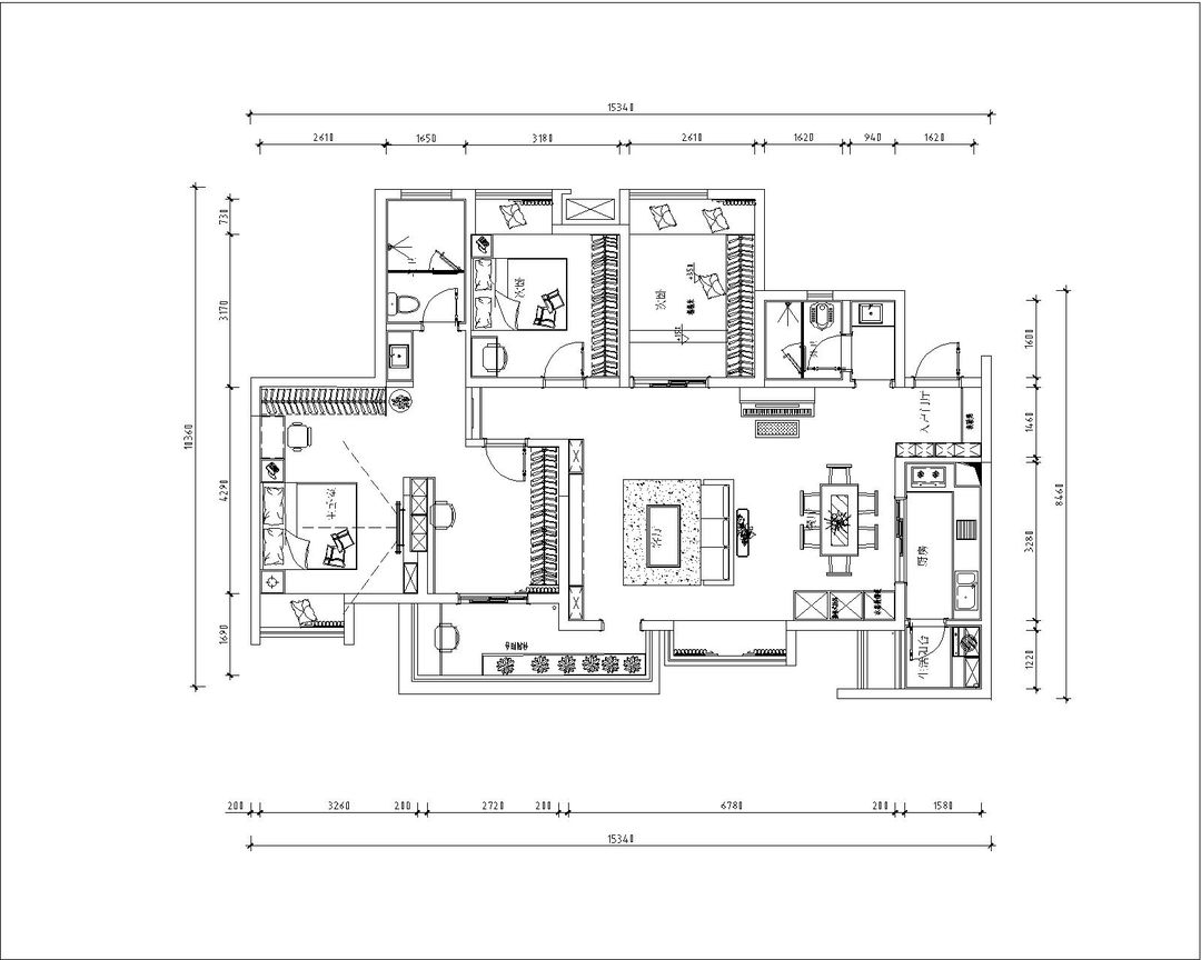 合理的室内布局是根据我们实际居住者在生活中的小细节而产生,每一个动向的改变与设计,都是根据她们的起居习惯和生活习惯的相结合,我们认为居家设计一定不能脱离实际的生活轨道,在有限的空间参数里,我们没有过分去改造结构,只是根据居住者的需求,做了功能上的局部调整,客厅的采光是阳光的折射光,为了增加自然光线与客厅的空间感,我们将一间次卧调整为多功能房间,相对的采光和方向,保证了客厅从早到晚能够有温暖的阳光和良好的通风,去繁从简也是我们在这一次设计中的一个构思,本来注重造型的美式风格,这一次做了减法,但舒适开阔的空间里,却融入了很多温暖的家具和柔和的材质进来,让长方形的客餐厅也增色不少浪漫温馨的艺术气息