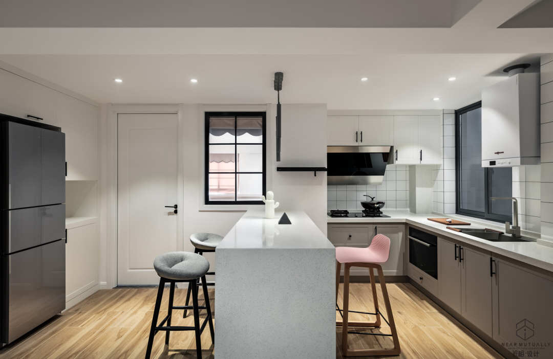 ▲厨房改成开放式厨房,增加岛台餐台,使餐厅厨房一体化。