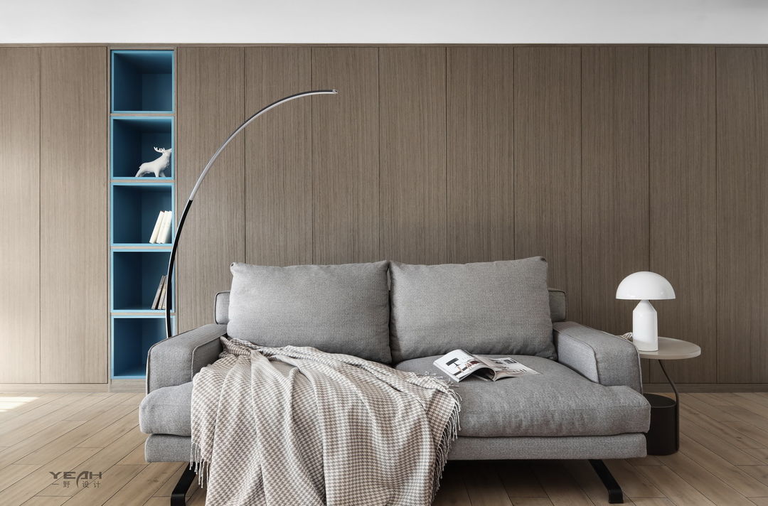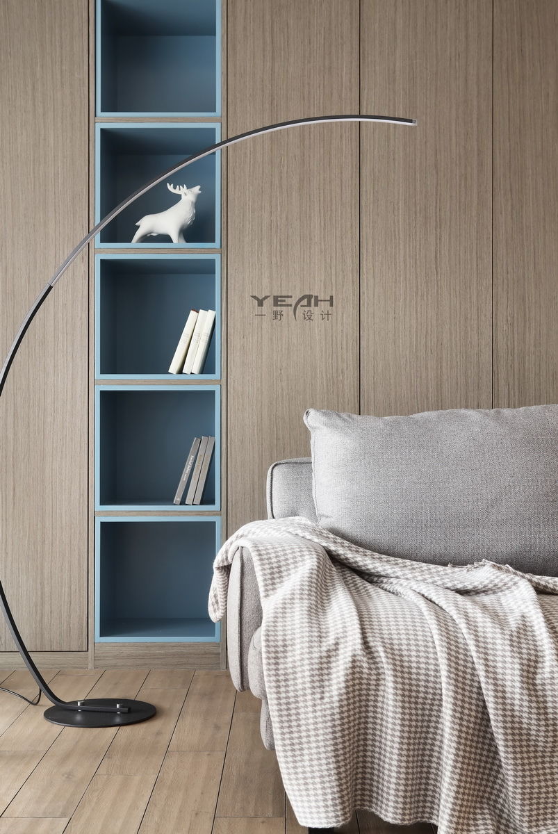 大量柜体与木饰面的结合运用强调出空间色块感