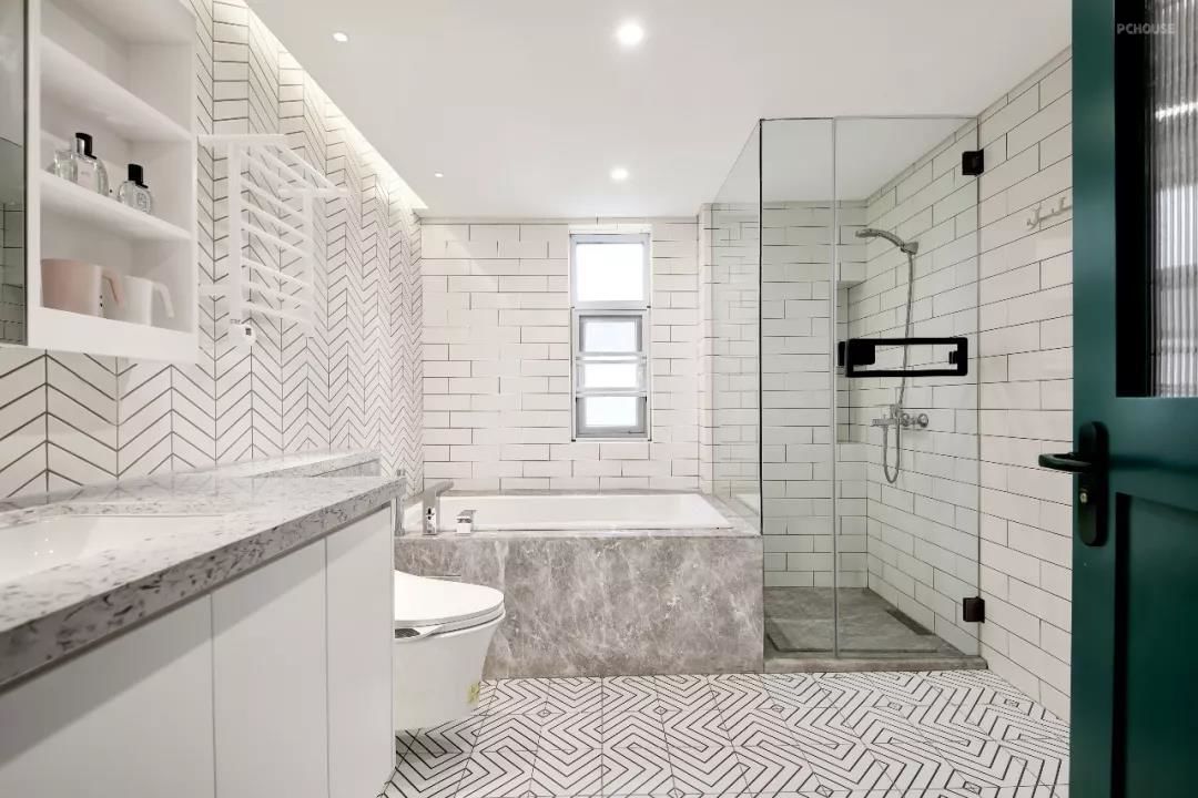 #卫生间 #智能马桶 #镜柜 #花砖 #面包砖 #加热毛巾架 #浴缸 #淋浴间