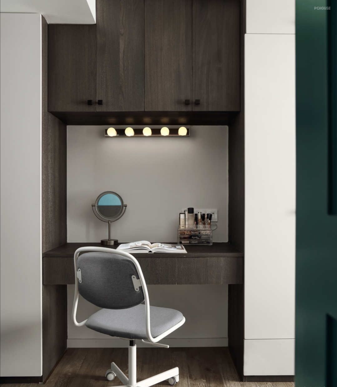 内嵌式的梳妆台,满足化妆需求。#卧室 #梳妆台 #衣柜 #收纳