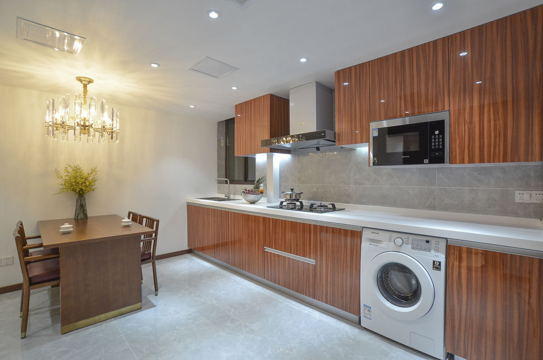 微波炉以及冰箱、洗衣机都做了内嵌处理,尺寸预留的非常精确,让一切的功能都有序的排列着。