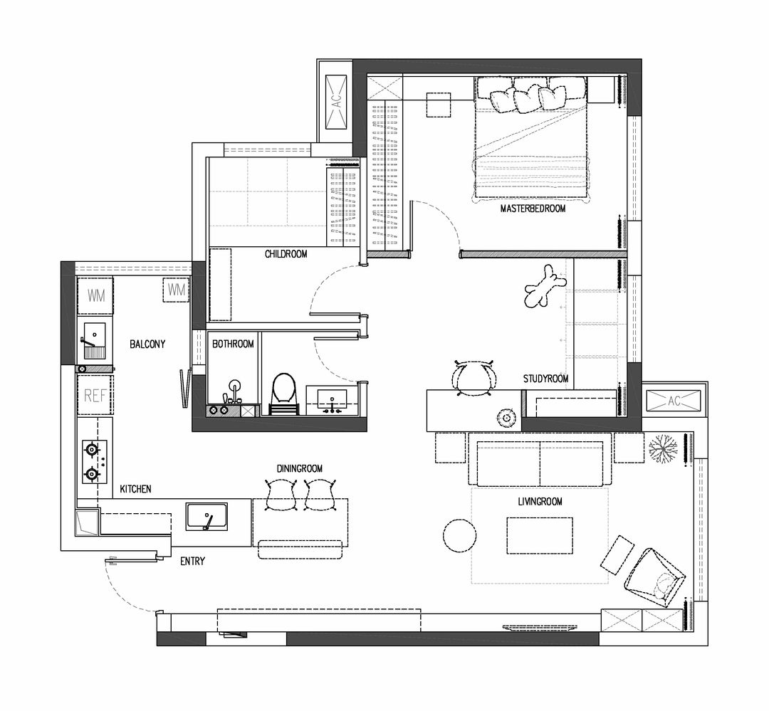 ● Demand 1. 常住人口只有夫妻2人加小孩,父母偶尔回来居住,所以保证要有2间卧室的同时,还需要一个供孩子玩耍的亲子空间。