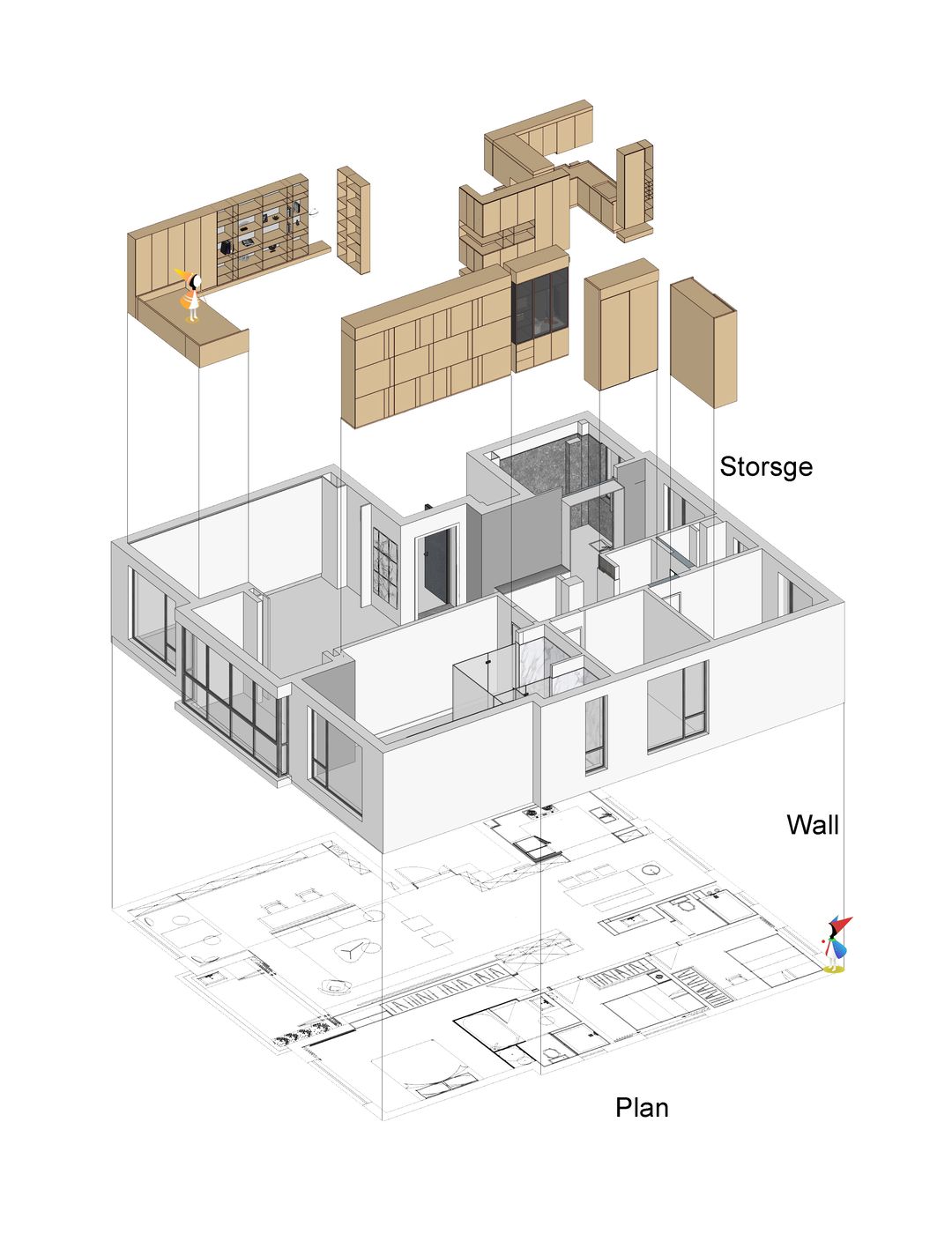 设计时考虑到传统电视机柜太浪费空间,索性就做成了一整排的抽屉储物柜。