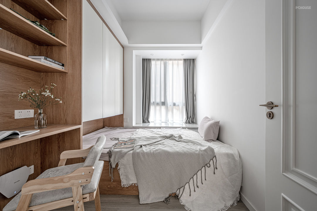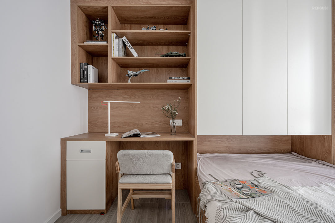 作为孩子的专属活动空间,儿童房不是一个空间,更是一段独一无二的时光,是承载着整个童年回忆的地方,门边的屋子脚灯守护着孩子的童趣。