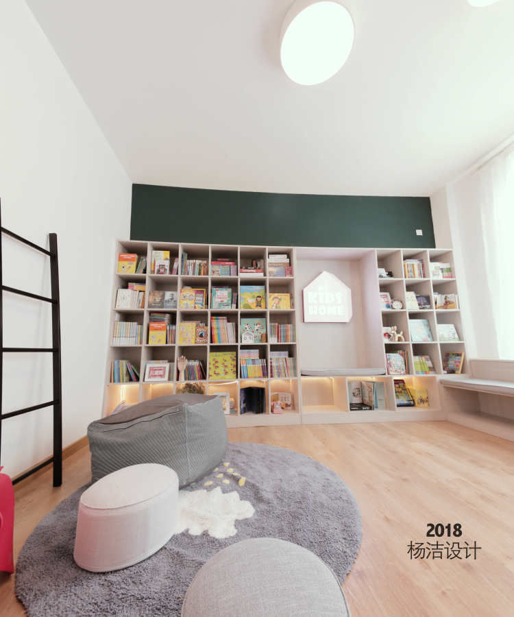 我把原来的楼梯间拆掉,打上灯光,做了生态区。这样不仅美化儿童家入口,也是孩子玩耍阅读的小空间。期待孩子们在这里玩耍的样子。