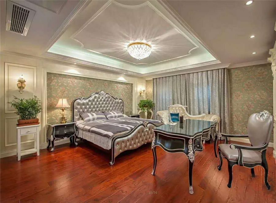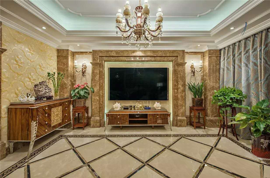 在都市的上空回归经典,家是暮色下,楼宇中透出的一缕温暖灯光;家是收纳我们身心的物理空间 ;家是在浮躁与压力中让我们保持平衡的心灵家园;家是我们一切的生活源泉。【客厅】优雅的纯手工雕刻法国拉菲德堡奢华古典家具配以个性的地面石材拼花以及性感的水晶灯,尽显优雅高贵质感,不时透出雅致的休闲情怀。她的精华来自古典主义,却不复古,而是将古朴时尚融为一体,追求神似的完美品质生活。【餐厅与厨房】复古的天然石材透着生命的白与尊崇!年轮感的圆形吊顶一圈又一圈与地面石材相呼应,诉说着,交谈着和谐的餐厅乐章。博洛尼最最经典的海蓝灰色系的整体橱柜,时尚,含蓄而又高贵。国际领先与前卫的设计理念,给居家的生活与厨房爱好者带来更多人性的方便与惊喜。【地下室卫生间与楼梯间】仿古的瓷砖配上异形的背景铺贴,简洁大方,木质的大方,陶瓷的洁白,玻璃的纯洁和现代化金属质感把手一起交织着……雨后清新光亮的质感条形青石,泛着灯光的地灯与小桥流水的小品在诉说着古朴的休闲与宁静。【主卧室卫生间】大气,整体的玉石感觉墙面给人以一种尊崇感!动感层次的吊顶与地面遥相呼应!我们希望在这个不耐久,短暂而随时间褪色的城市,营造一点点属于自己的方向,做一回真正的自己。【女孩卫生间与老人房】自然,时尚公主情结体现在生活中每一个细节。及其简练的线条,别具一格的层次造型,古朴中透出心灵的宁静。【男孩房与卫生间】卧室与书房在半透半隔的经典雕花屏风中演绎着和谐欢快的氛围。男孩房卫生间简洁,大气,利落,刚毅,是我们想表达一种情怀。