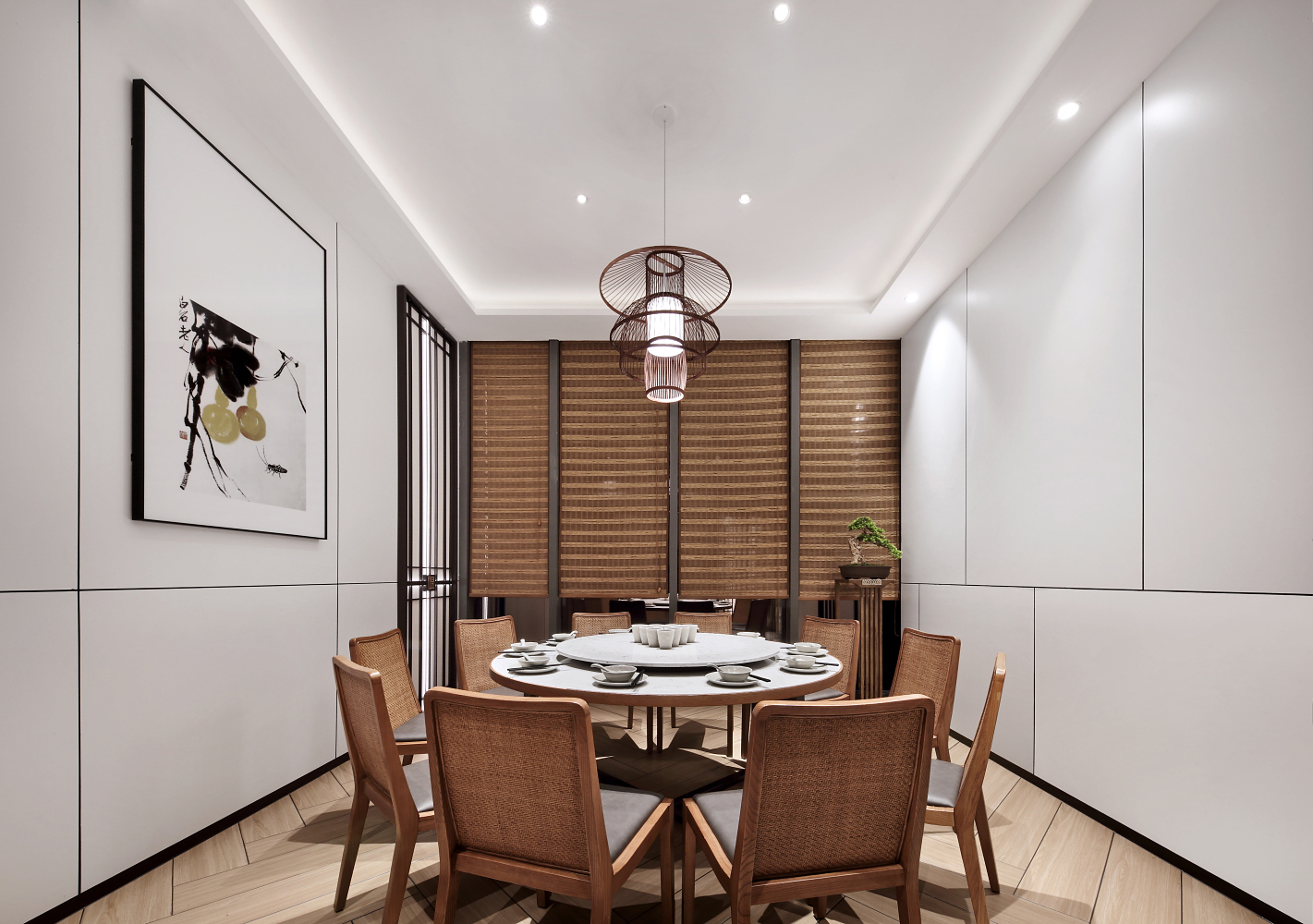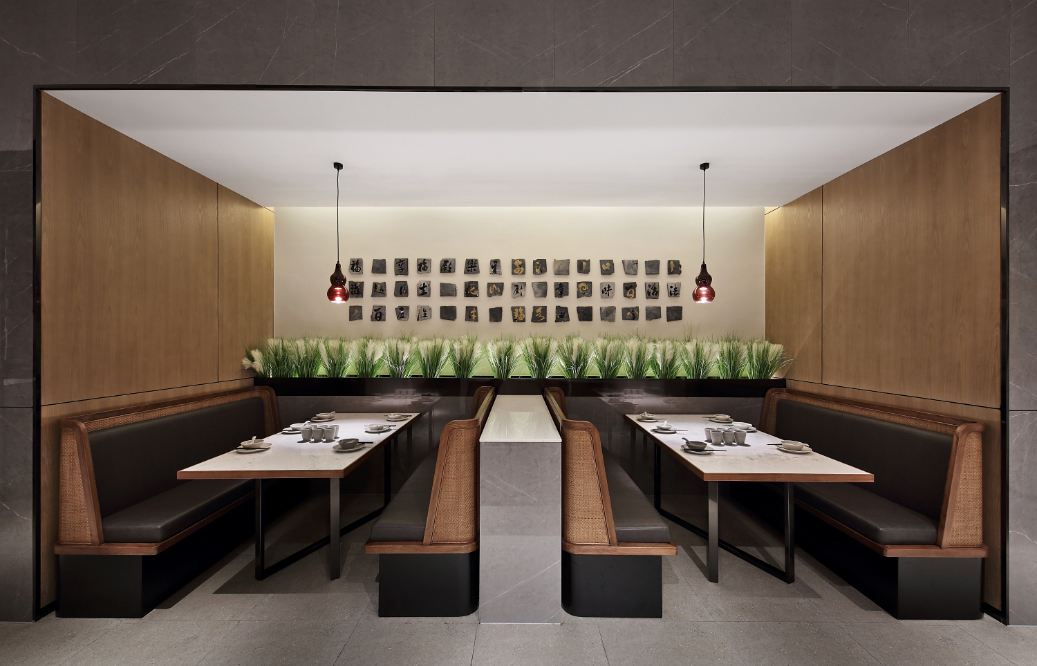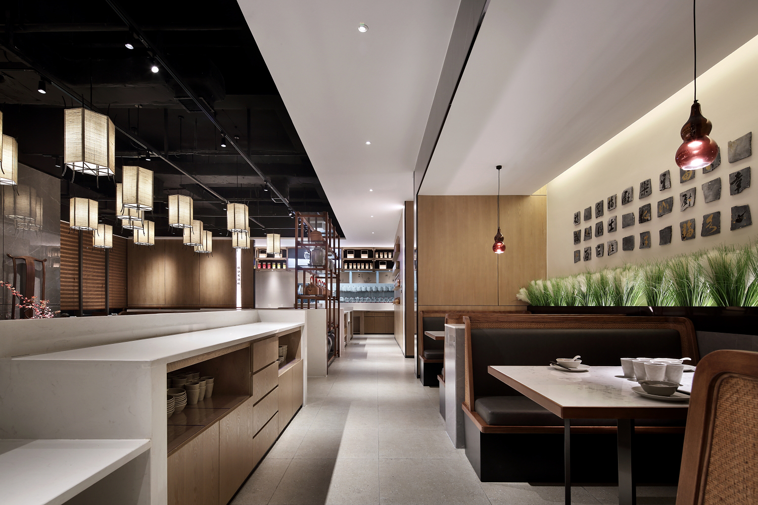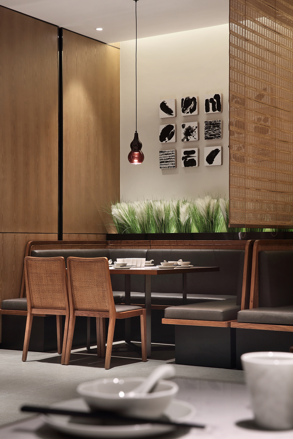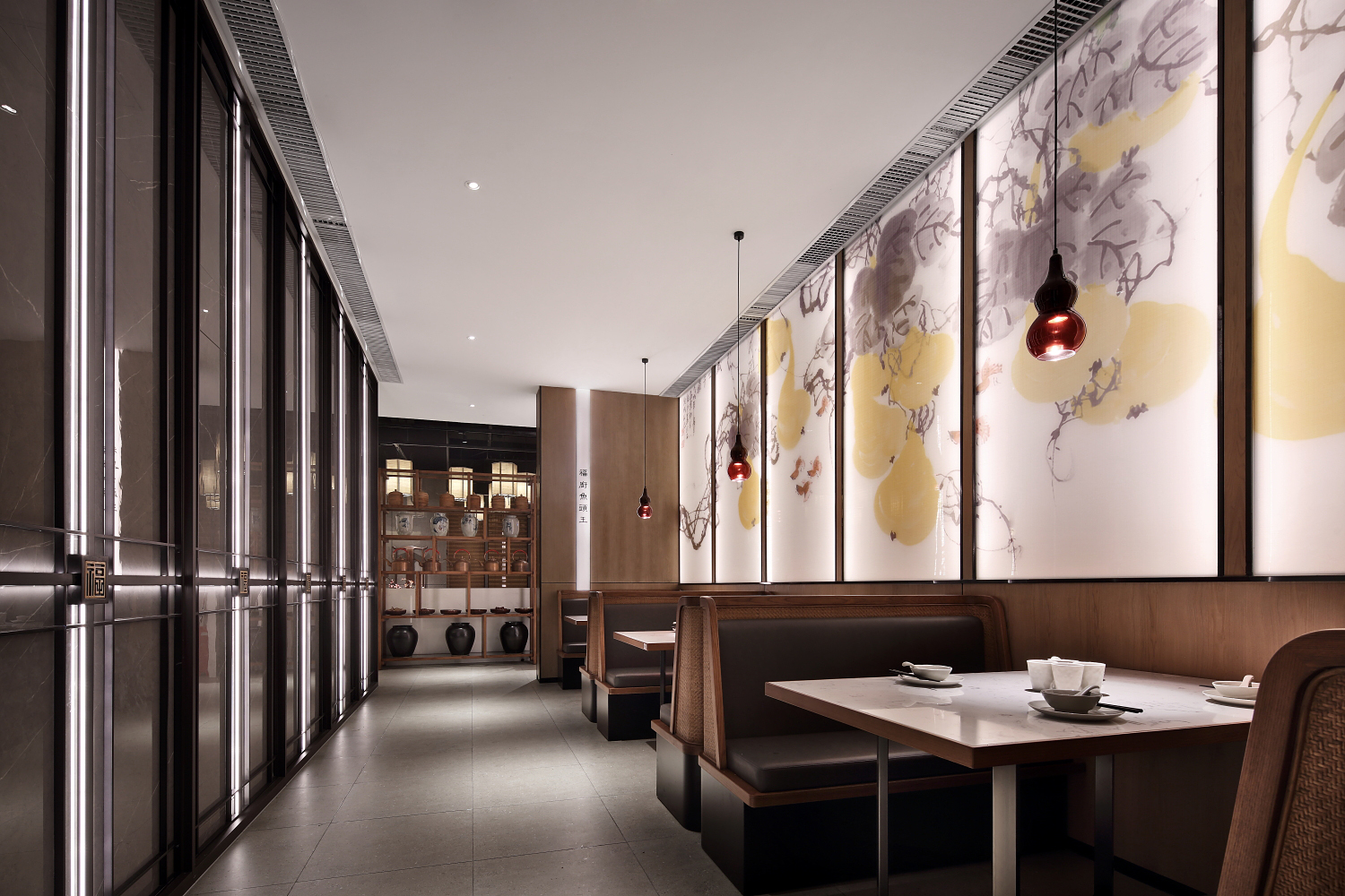 众星捧月般的“福”是空间的点睛之笔。设计师用现代手法演绎福的概念,以朴实的材质营造简约、精致、有温度的用餐氛围。