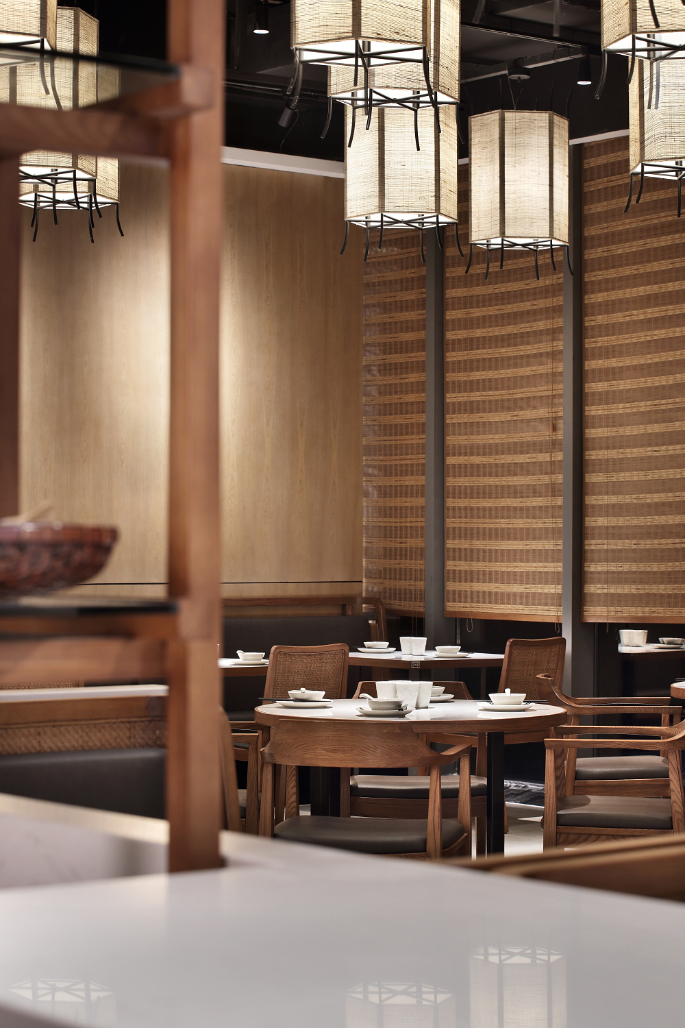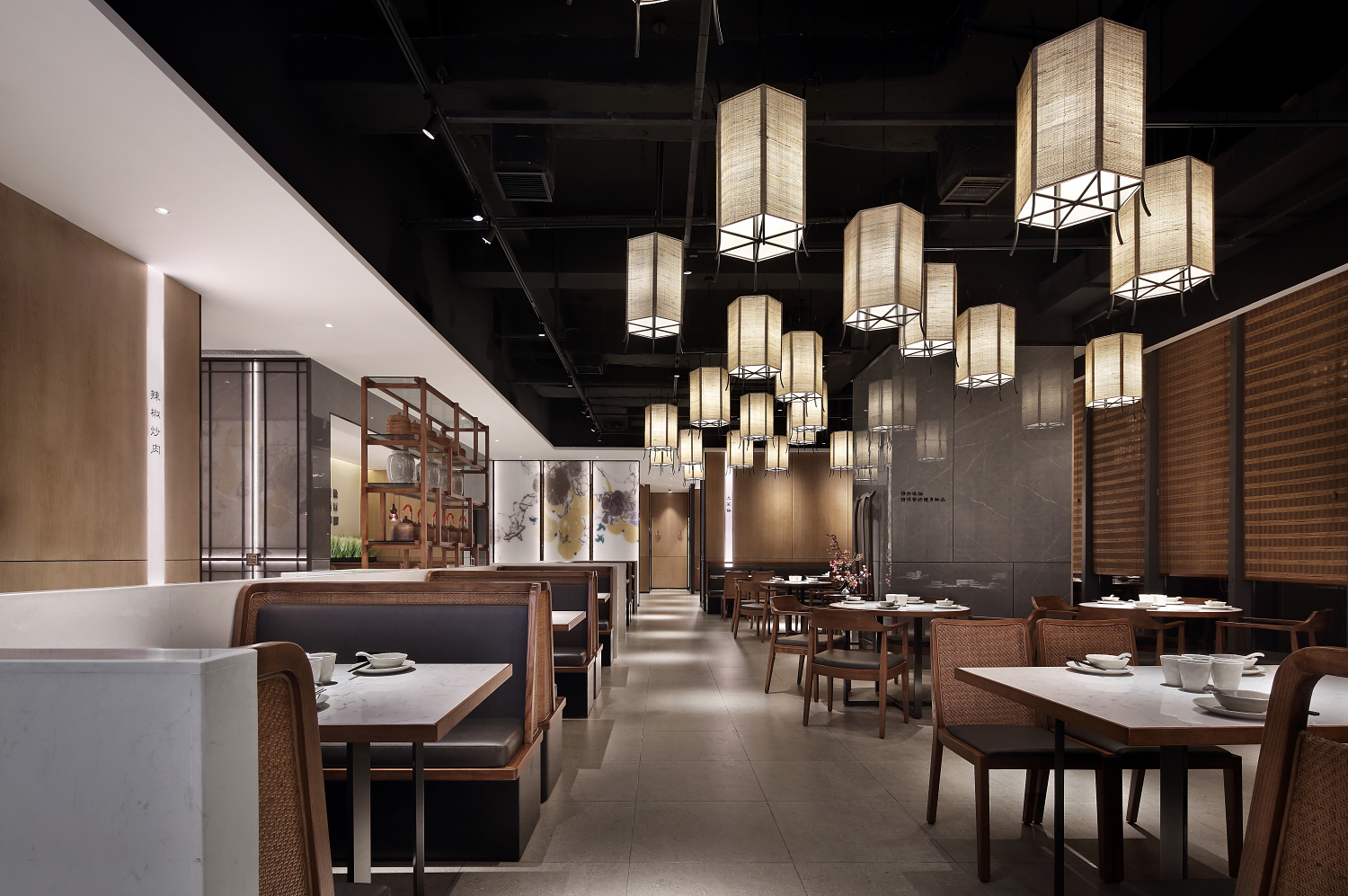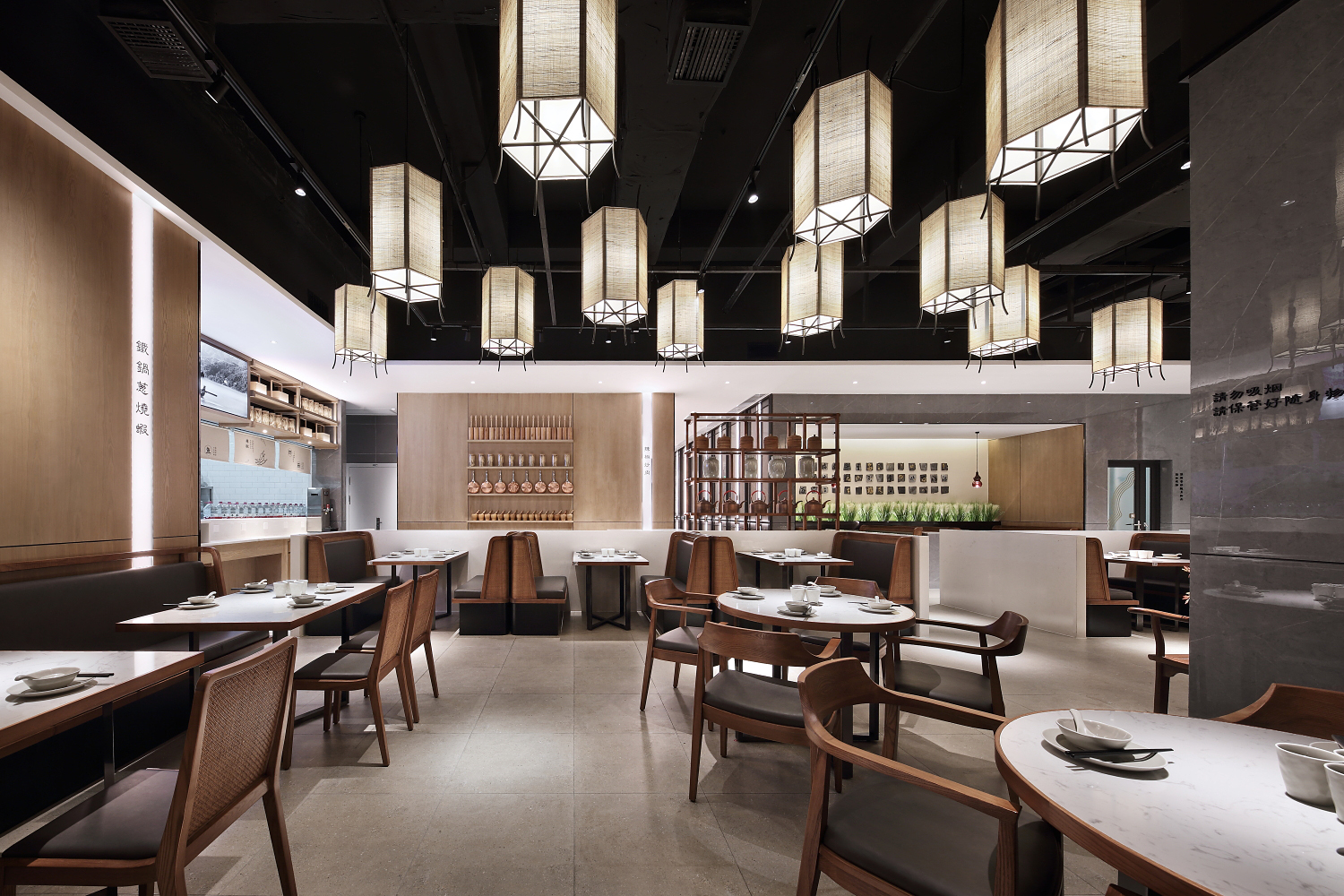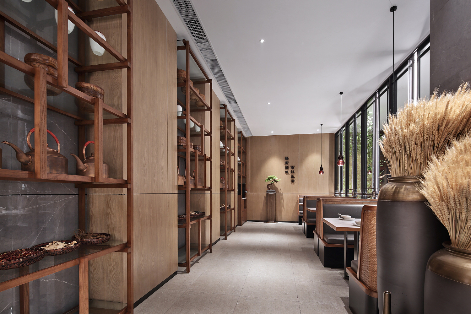 本案设计中,艺鼎设计师追溯千年福文化,从「福厨」品牌文化入手,提炼出当地古建筑的代表性拱形木结构为空间架构,以福厨品牌文化为空间氛围烘托。