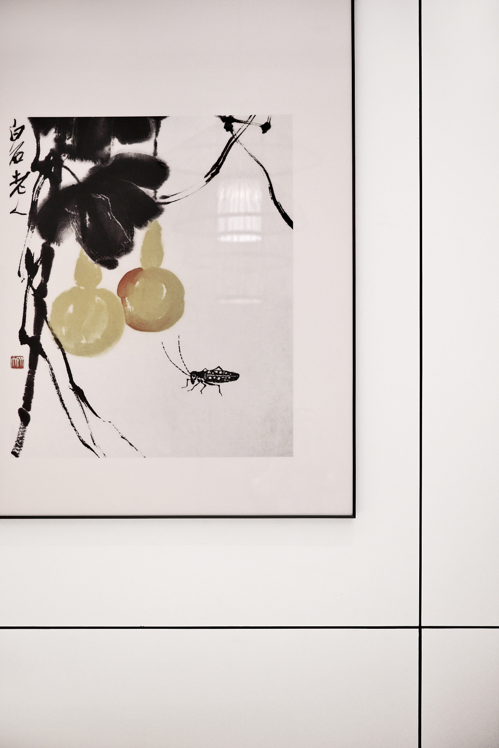 环顾自周,墙面艺术装饰随处可见,精巧雅致的盆景、陶罐里插的芦苇、寓意丰足的麦穗、水墨风格的瓦片、葫芦绘画等无不烘托着温馨的“福”主题。