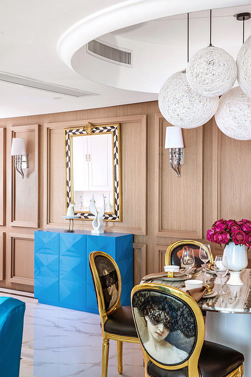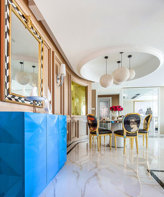 #餐边柜 #玄关处放置宝蓝色的柜子,非常吸睛!