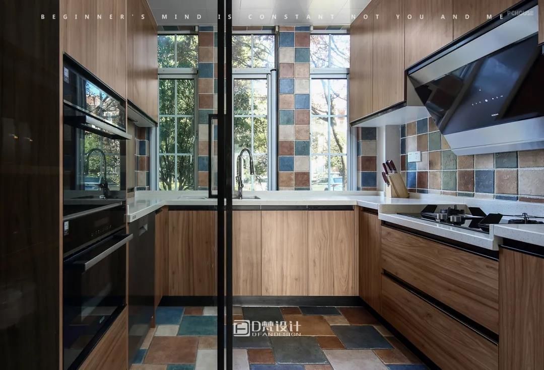 厨房的花砖,典型的美式风格,在《小欢喜》里黄磊家看到同款花砖,说明现在还是很流行啊,砖是很好的品牌,用了十年还是很好,所以保留了下来,装好之后很多朋友对这个花砖赞不绝口,没想到花砖倒成了家里的亮点!为了AEG洗碗机,整个台面抬高了,不过家里人个子都不高,所以灶台做了下降处理,一切为了使用舒适性服务!还有大单槽和抽拉水龙头,强烈推荐,这些都是改造前装修想做没有做的,事实证明,大单槽和抽拉龙头是绝配啊!还有蒸箱和烤箱,也建议一起装了,家里台面真的整齐了太多,因为不需要那么多的蒸锅啊,保温箱啊等等等!如果你不是追求完美体验的大厨,个人觉得不需要买大牌的蒸烤箱,我们让欧派橱柜配的蒸烤箱,实际使用下来足够.