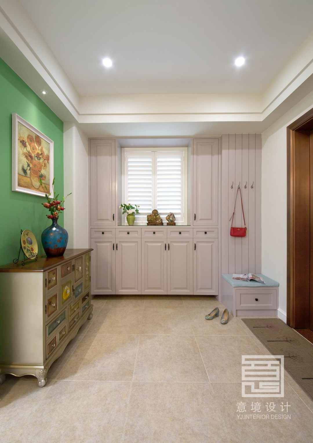 入户的设计不仅要有大大的鞋柜,还有方便老人小孩换鞋的换鞋凳,随手挂包、挂衣服的地方,这些细节的设计无疑给生活带来了更多的方便,顺应家人的生活习惯。设计源于生活,服务于生活!