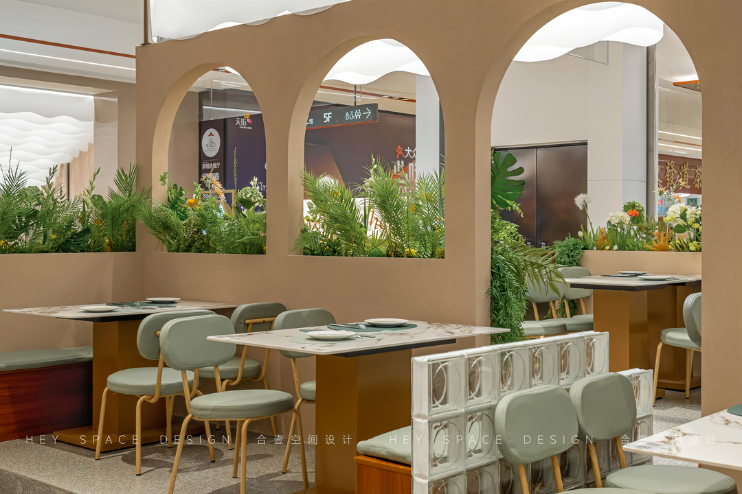 @合壹空间设计:有鲜花有绿叶也有云朵,在一片绿意里用餐,在喧嚣城市里,找寻一片静谧的绿洲,去沉浸于此刻的放松惬意。