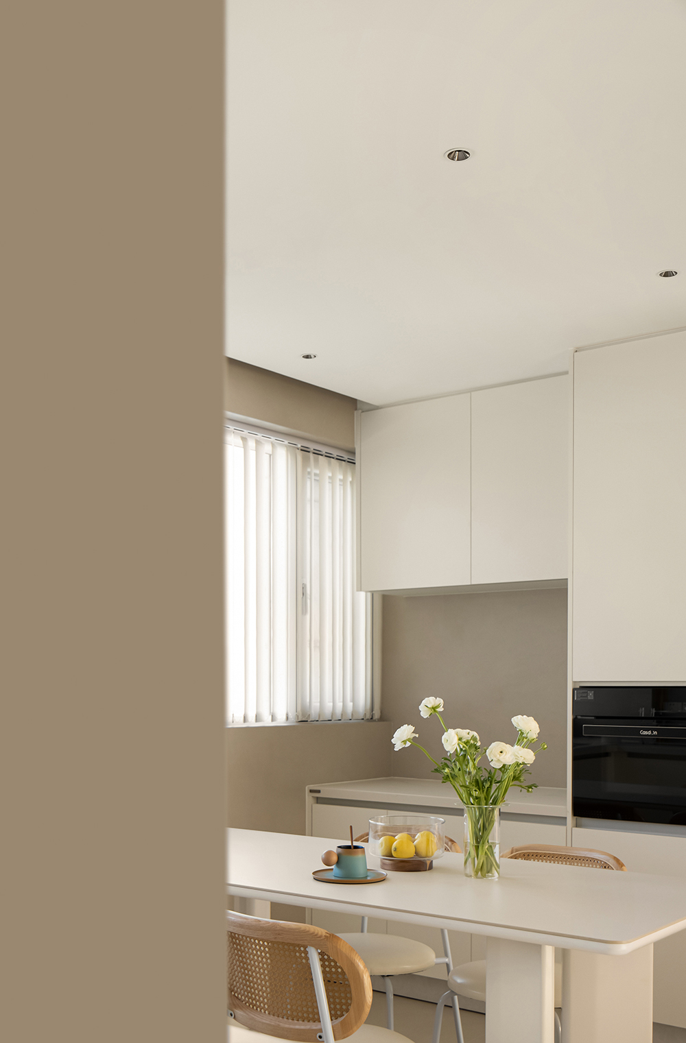 空间色调协调统一,整体光线自然柔和,恰到好处的留白拉伸空间的纵深感,让餐厅不仅成为一道靓丽的风景线,还彰显出屋主高级的生活品味。