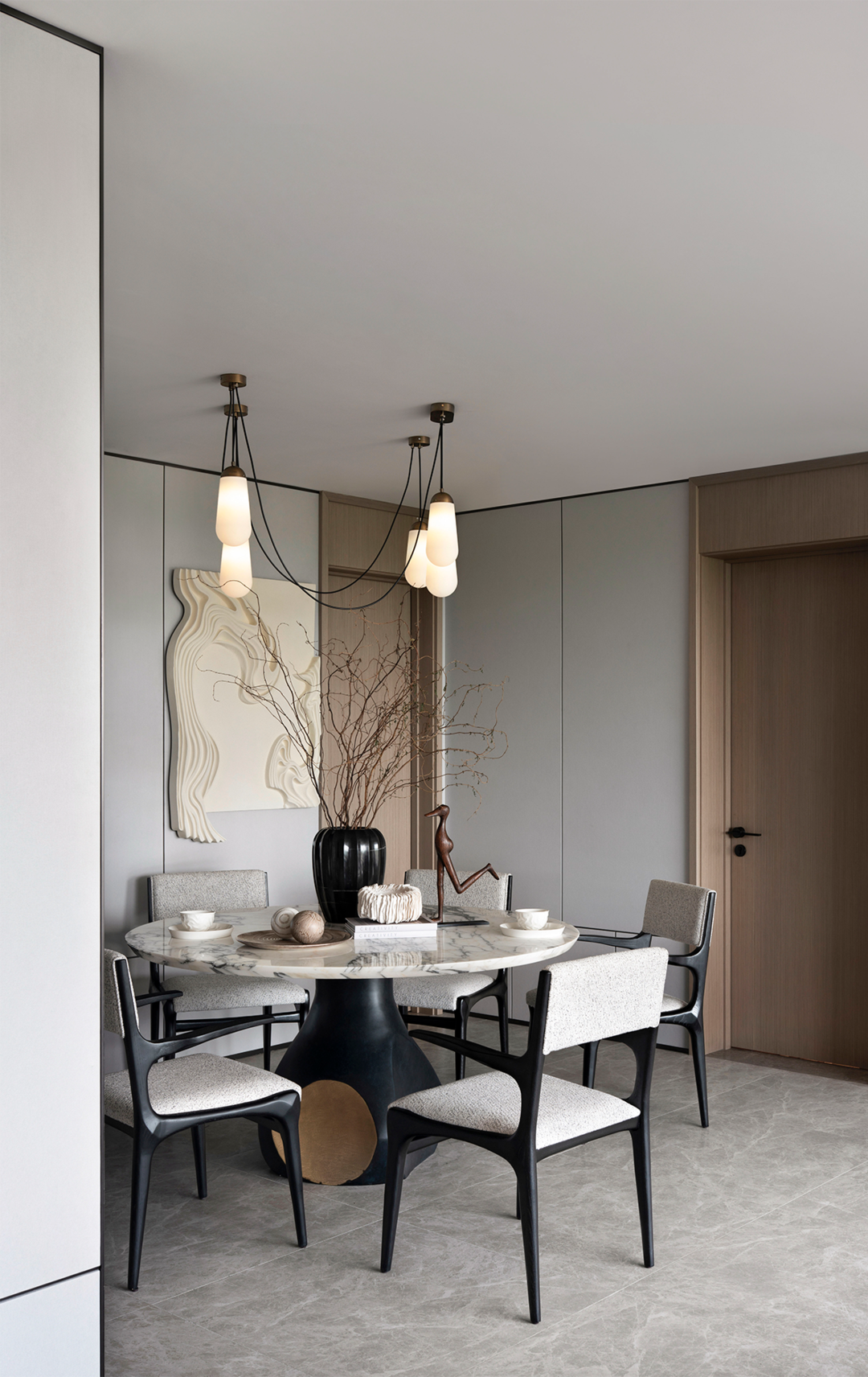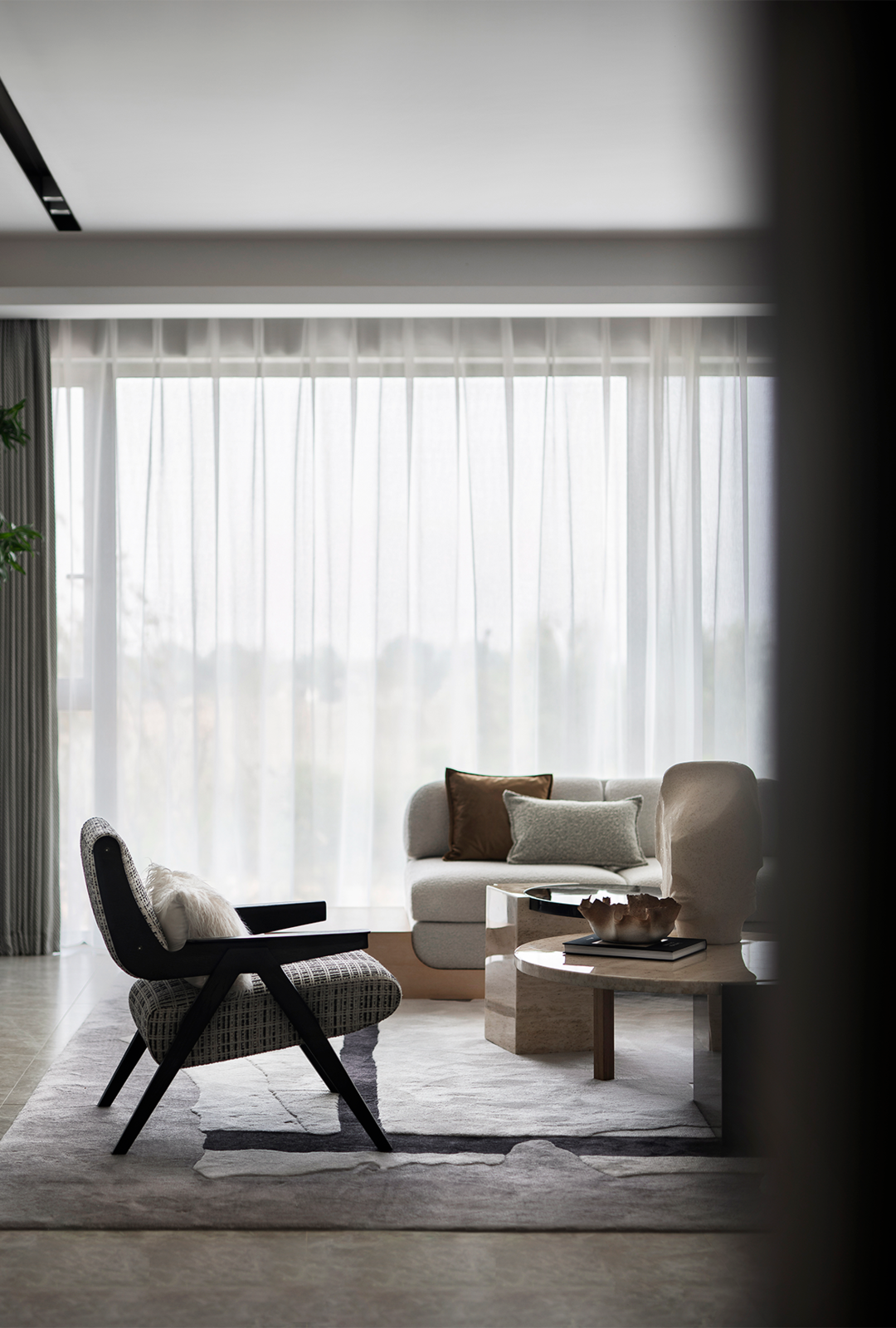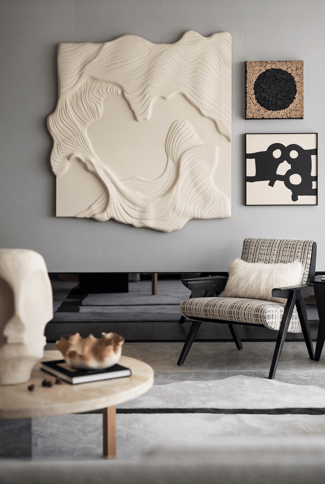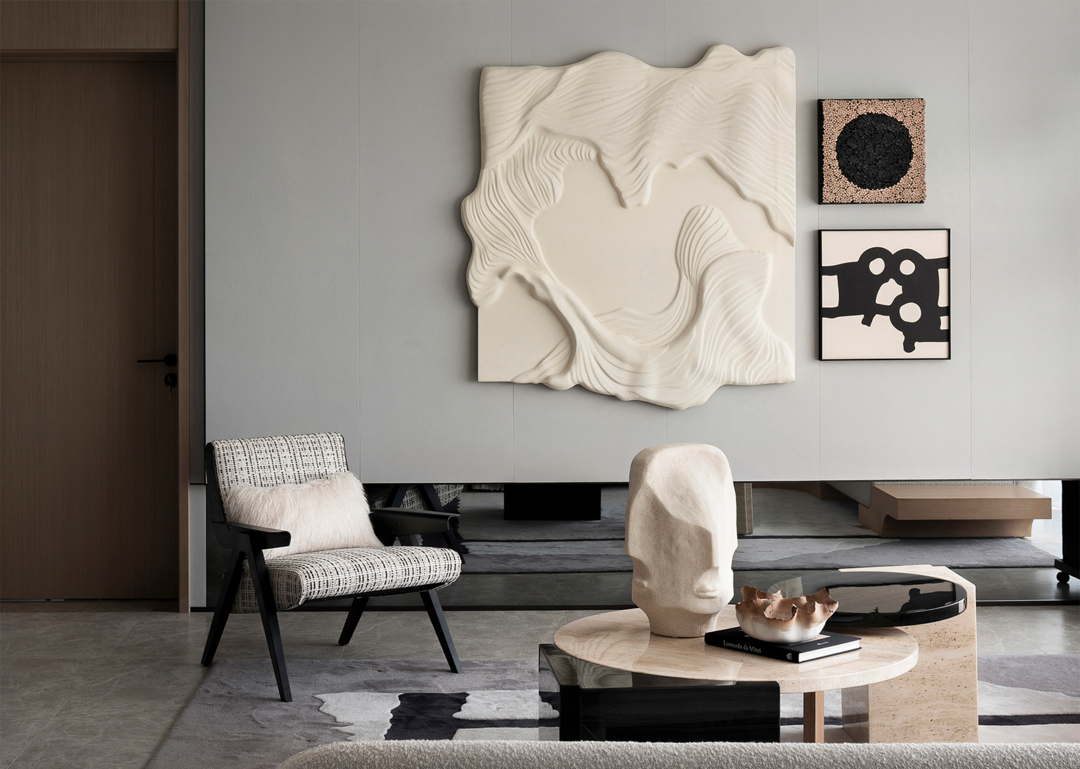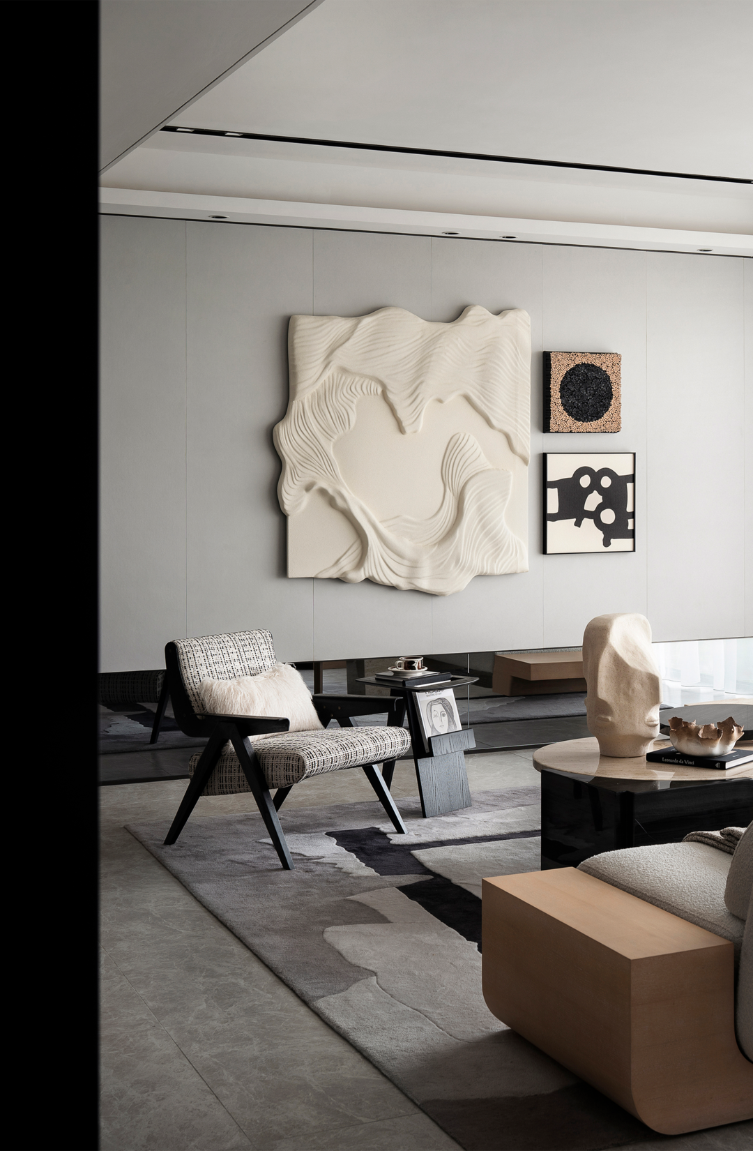 从千丝万缕到抽丝剥茧,某种程度上,都会生活与山水的哲学如出一辙,成为衔接文化与记忆的通道。擅长将生活揉碎来解构艺术的布鲁盟设计,将西安中天·未来玥的情境样板房,拟作都市中的“山水之家”,经由提纯、解构、打磨、压褶、留白、重铸的艺术工序,开启一场流连山水间、栖隐繁华里的当代隐逸实验。