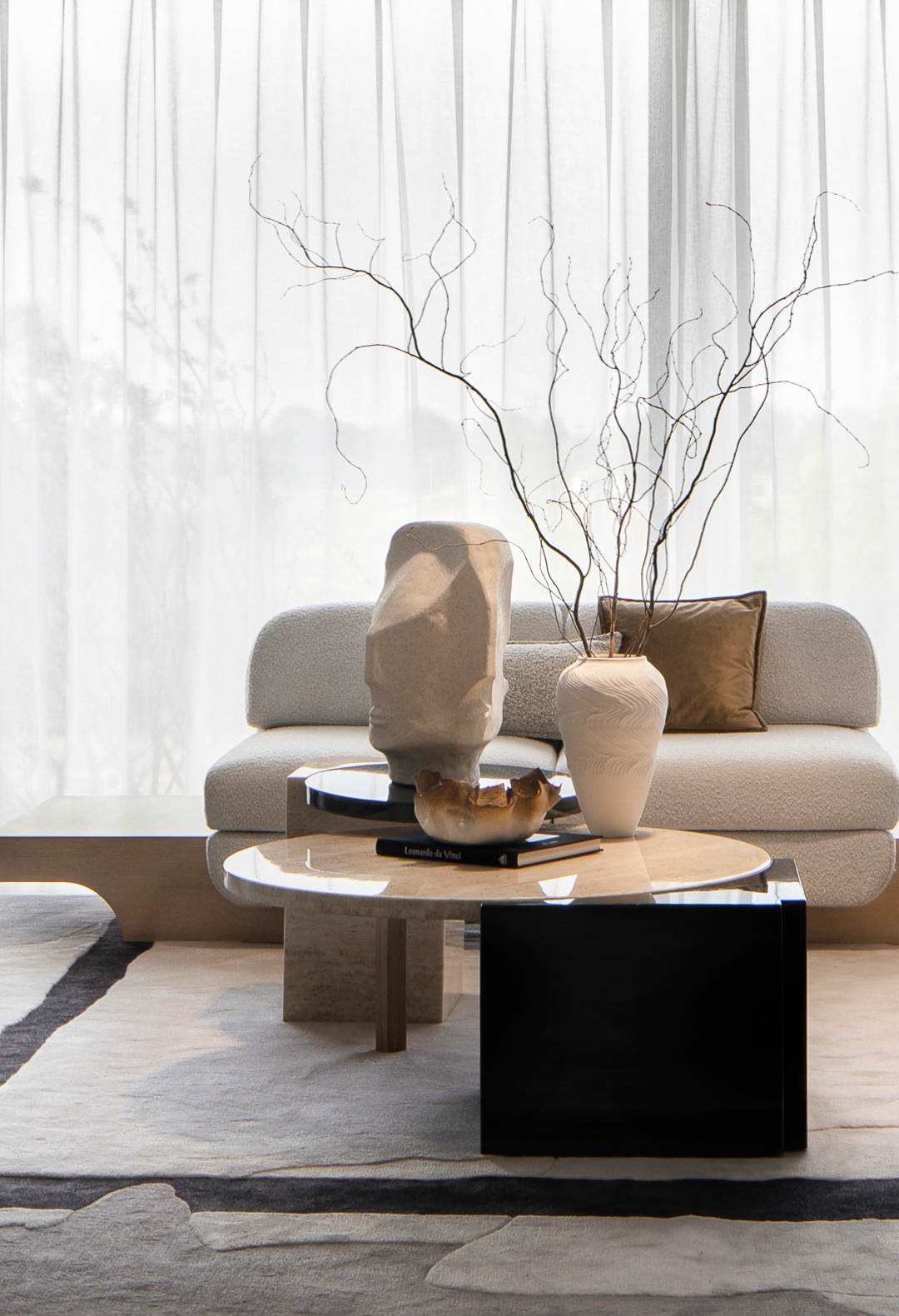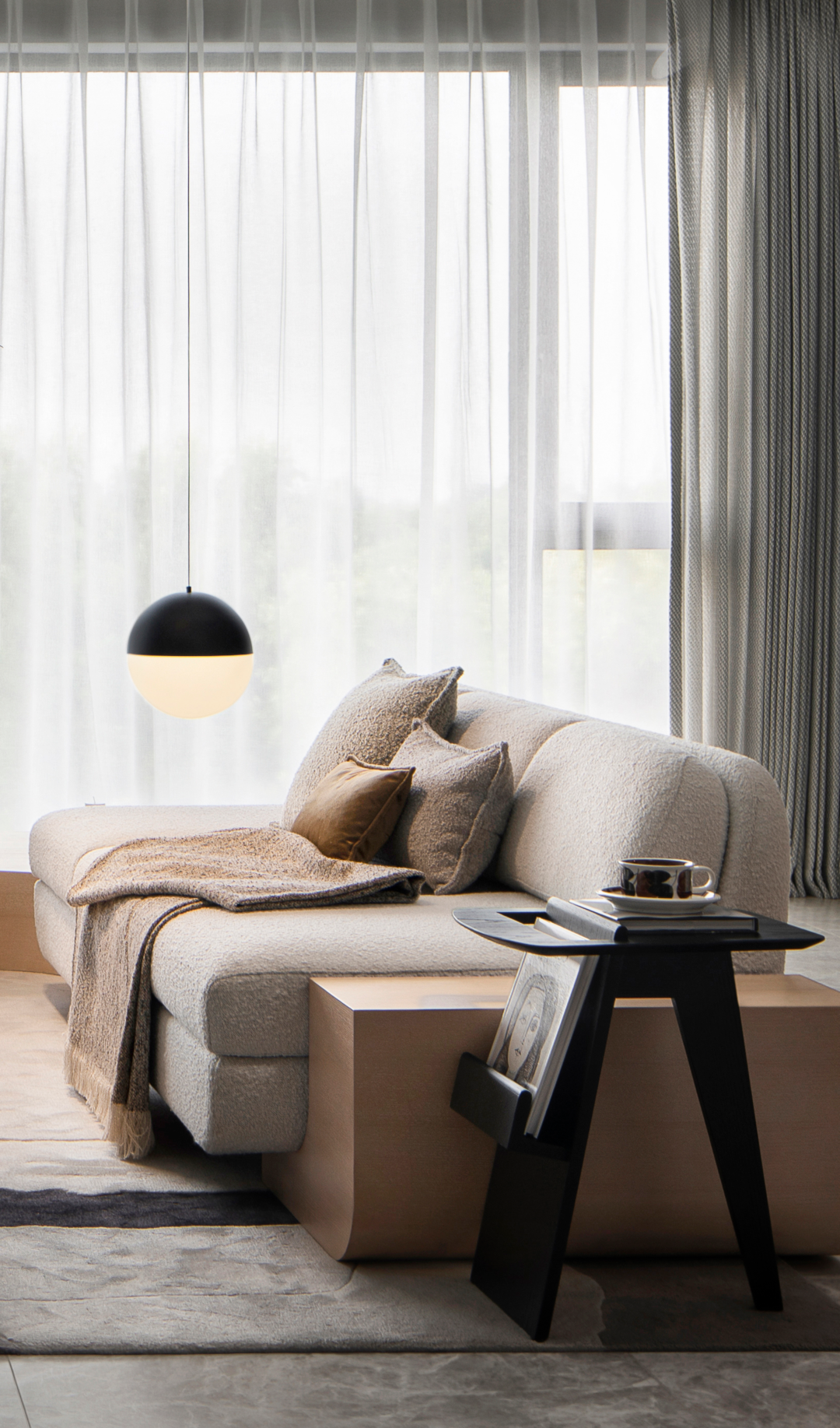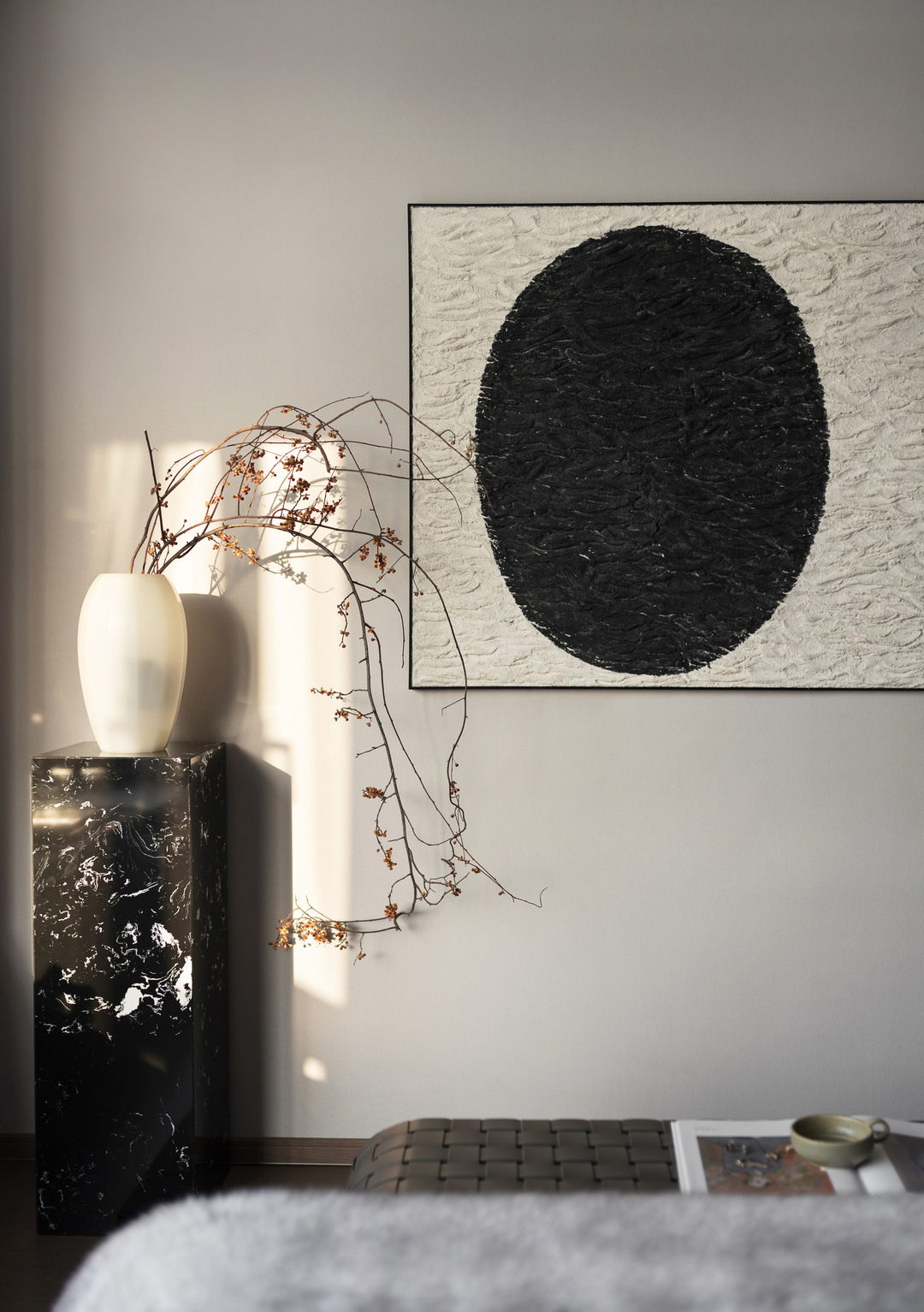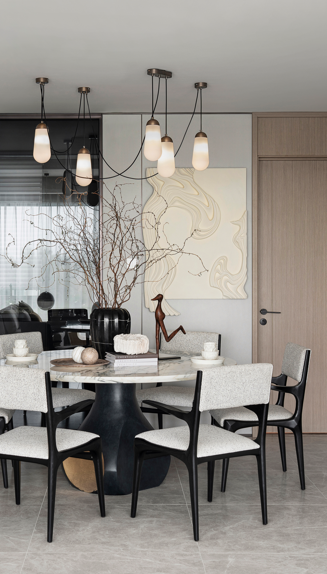 从千丝万缕到抽丝剥茧,某种程度上,都会生活与山水的哲学如出一辙,成为衔接文化与记忆的通道。擅长将生活揉碎来解构艺术的布鲁盟设计,将西安中天·未来玥的情境样板房,拟作都市中的“山水之家”,经由提纯、解构、打磨、压褶、留白、重铸的艺术工序,开启一场流连山水间、栖隐繁华里的当代隐逸实验。