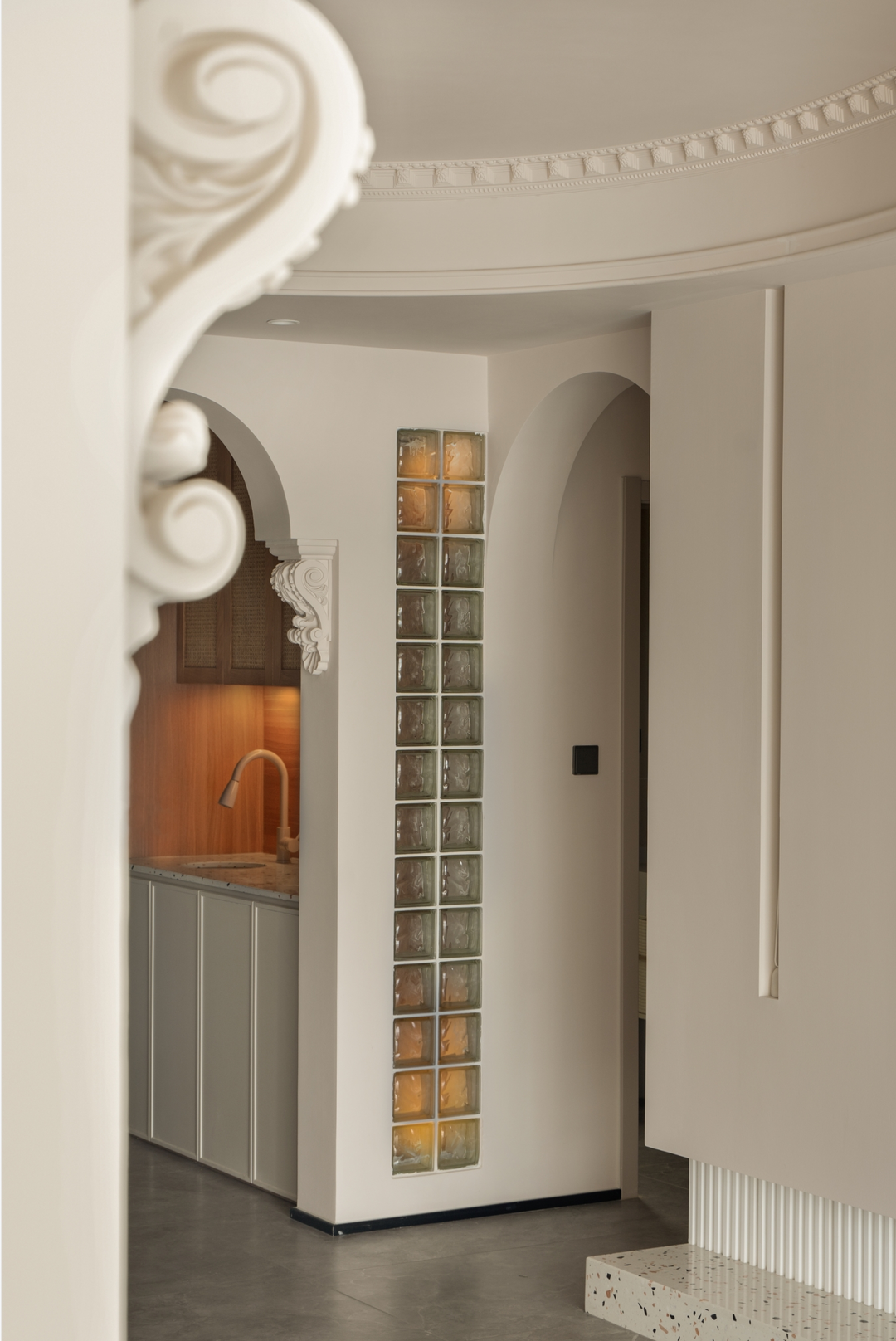 玻璃砖内嵌灯带,有种黄昏的感觉