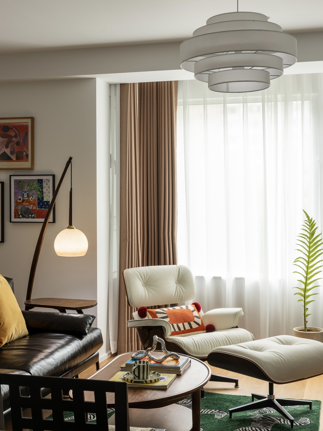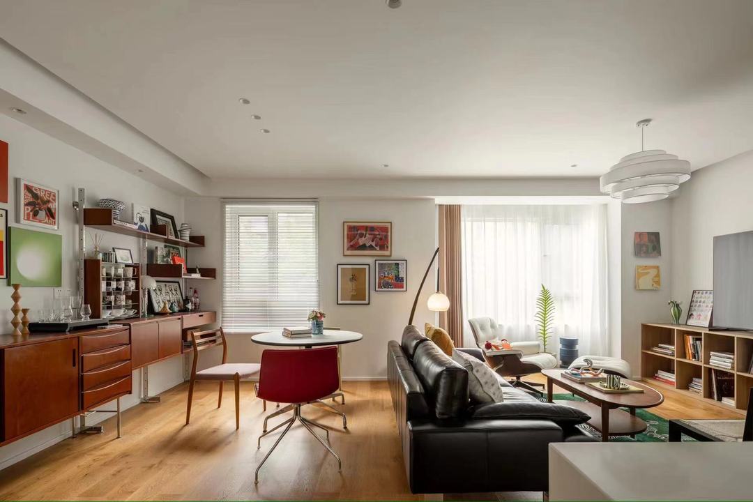 业主夫妻二人希望可以减少空间分隔,我们打破传统客、餐、厨闭合的形式,巧妙优化,打造开放式多元交互的空间。客厅形成洄游动线,整体区域满足日常休闲和社交,动线完整、功能区全面且便利、家具软装又极具趣味性,形成自由又融合、随性而互通的空间秩序。