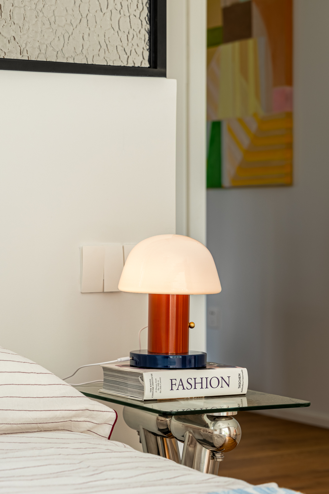 由于原始户型的墙体可以拆改,所以我们实现了客餐厅一体的设计,这也是业主的诉求。业主喜欢收藏唱片、乐高、挂画等,既要展示又要满足储物,所以在储物设计上要放松且实用,我们设计开放式置物架、格子柜、壁龛等,将业主喜爱的物件展示在家的各处,增添鲜明的个性。整个空间将浪漫与热爱融会贯通,跳跃的色彩、随性开放的布局,打造出一个富有情感的家庭空间。