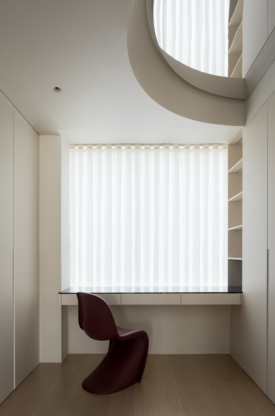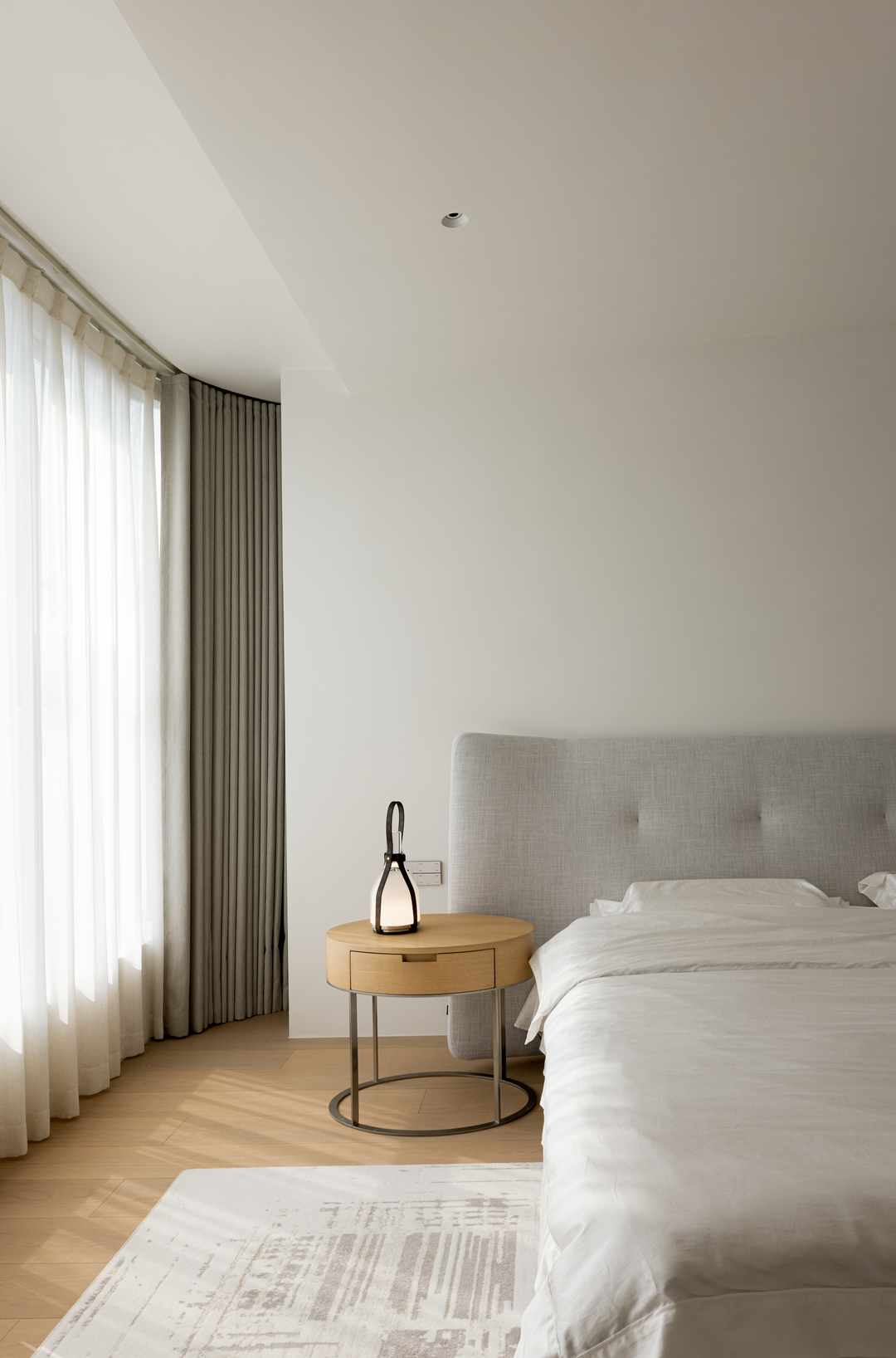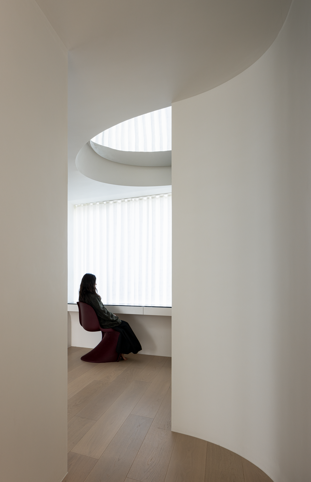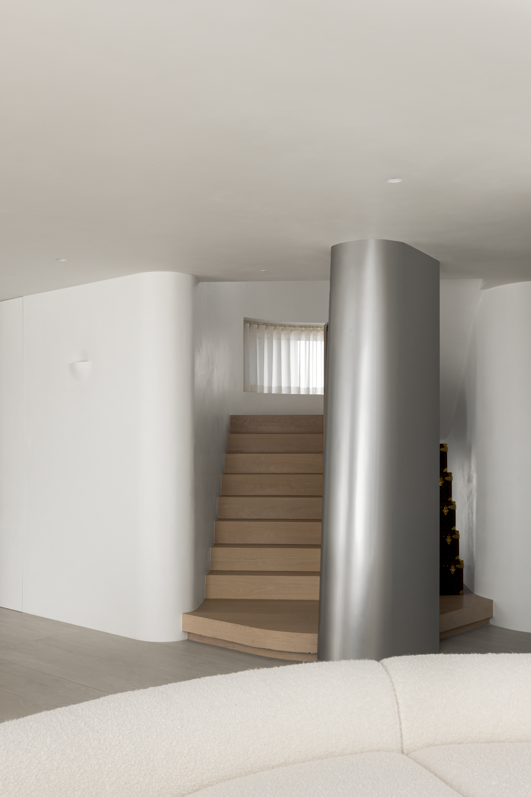 原木与留白赋予润泽,时间的诗意也自然沁润至日常。曲面的多元呈现与倾斜结构的巧思,让楼梯空间感觉更有意思和艺术性,行走坐卧间任光影成画。