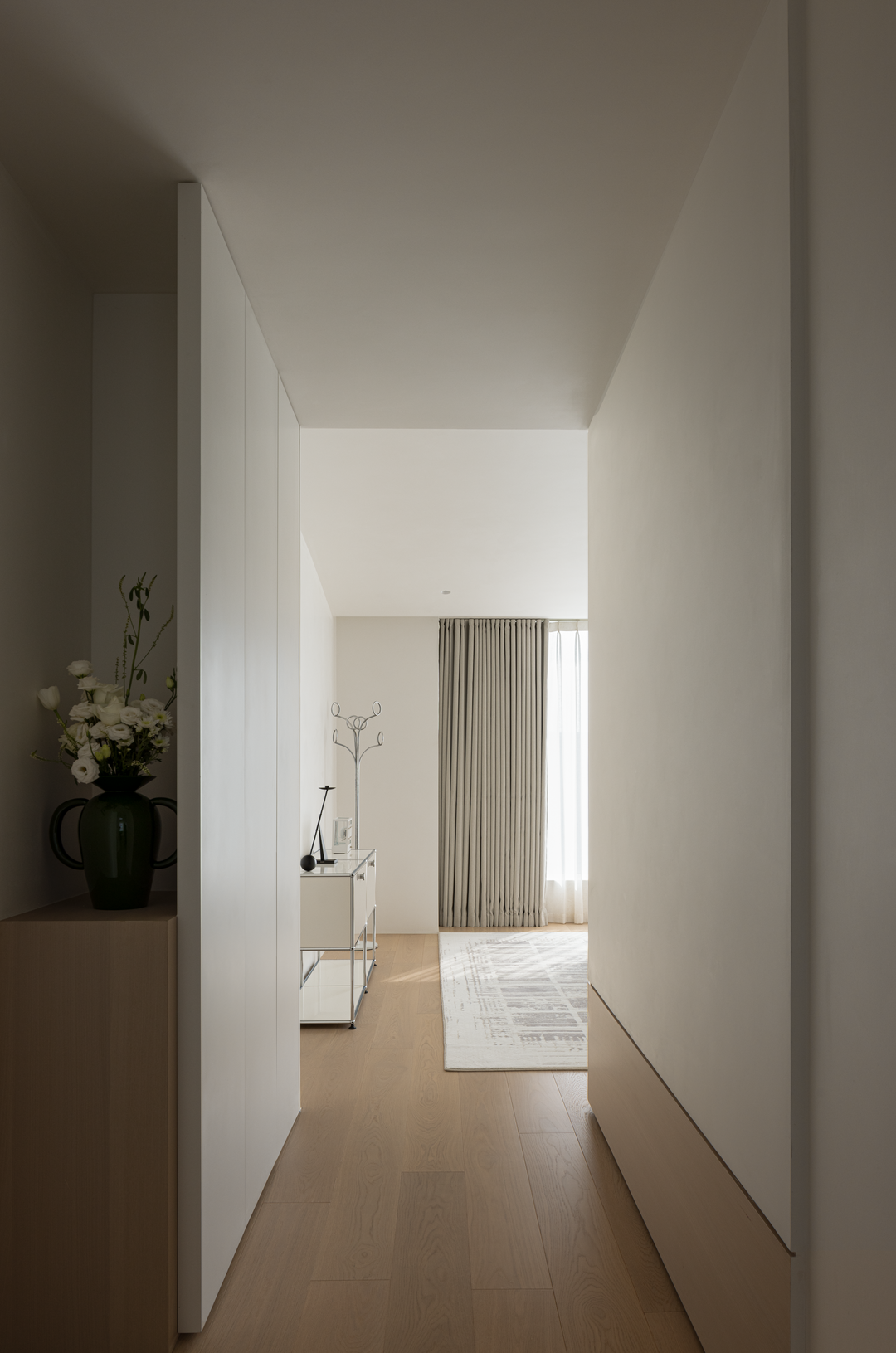 极简与艺术相互并置,在清浅印象中搭建纯净的空间幕布,将居住者理想中的生活场景逐一具象,在延展空间中还原生活的本貌,舒适与写意相映,气韵与细节并行。