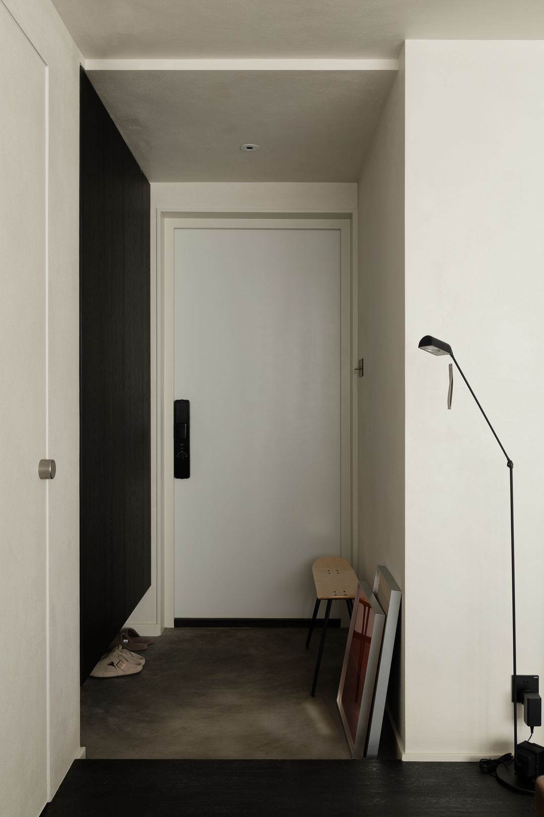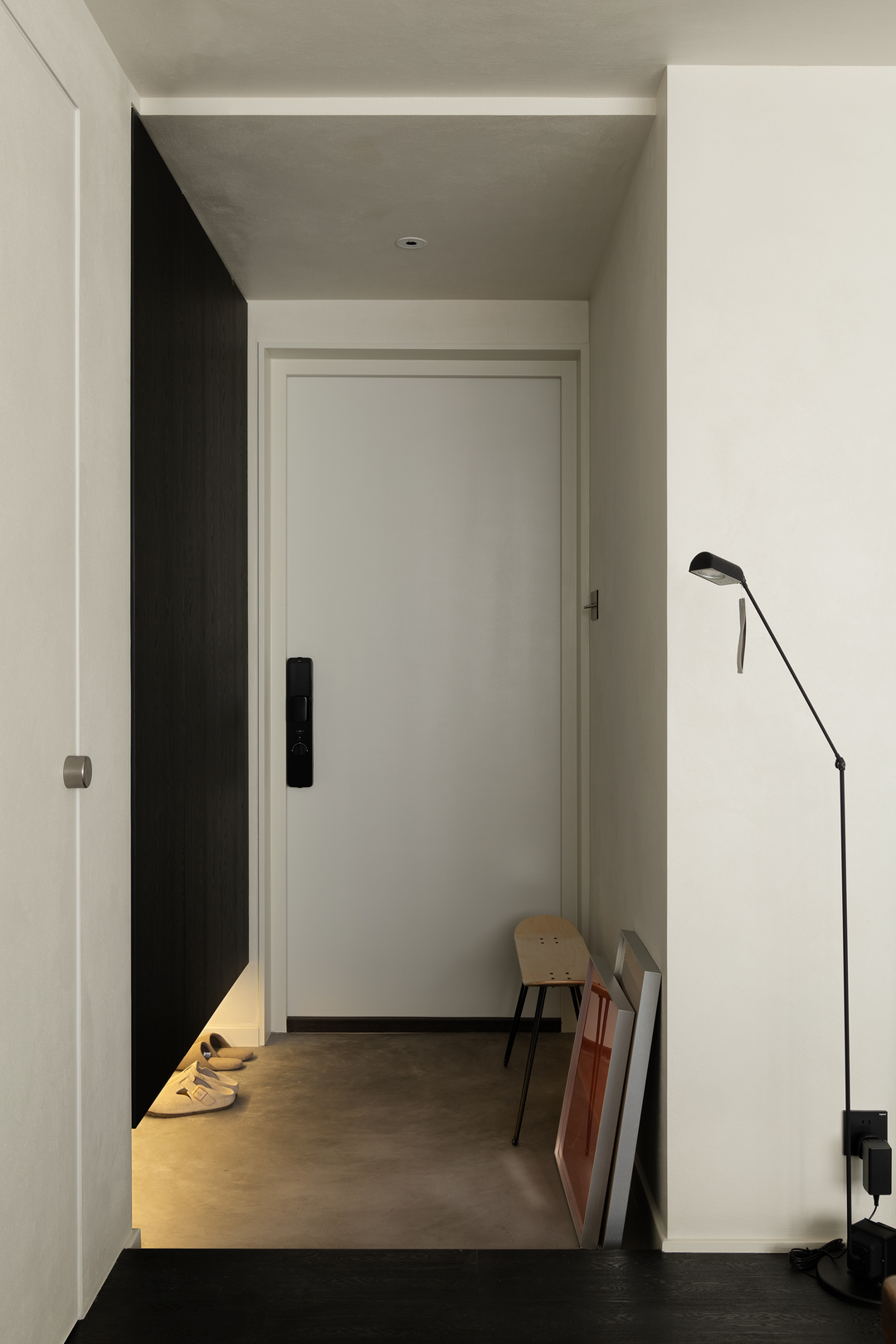 主卧门同样用极简的表达方式,左侧墙面上有一个小壁龛的设计,增添设计点。
