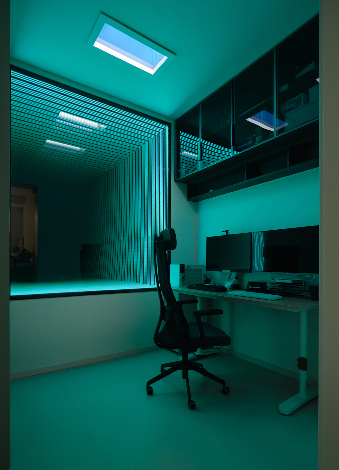 透过负一楼活动室的小圆洞,可以窥探到电竞室的情况,小朋友活动的时候也可以互相”眺望“