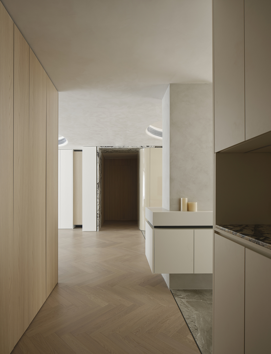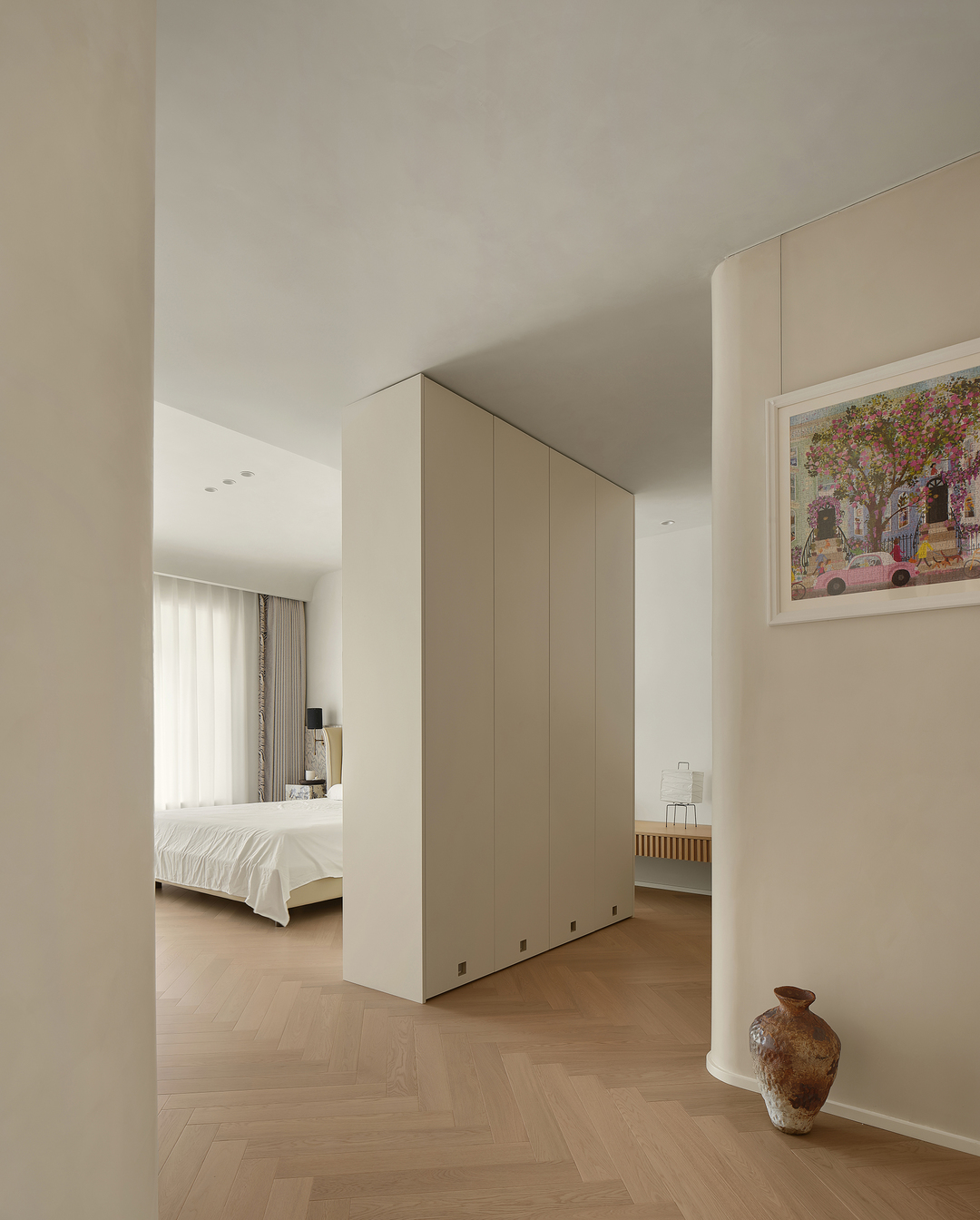 将北次卧并入主卧,私密与舒适的完美结合。空间的过渡呼吸,材质与色彩的精妙融合,实现不经意的高级感。充足的收纳空间,让琐碎如魔法般消失于无形。