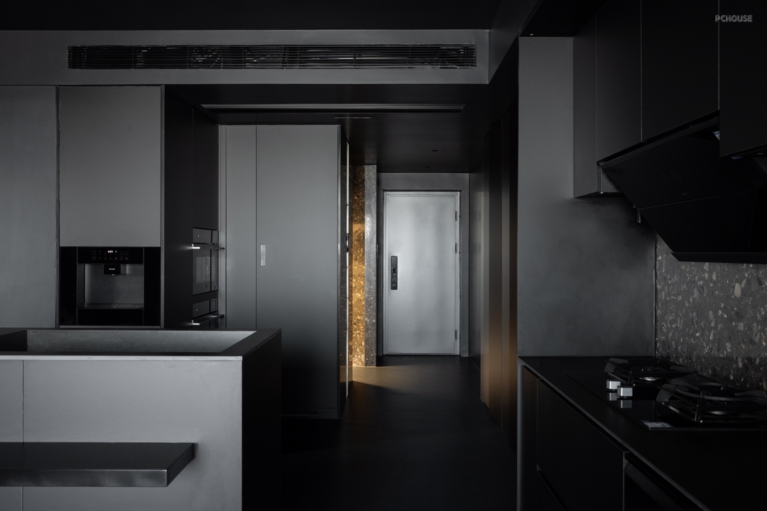 黑色,如同午夜的绸缎,悄然无声地在餐厨空间中蔓延深色材料的选择不仅加深了空间的深邃感,更赋予其一种难以言喻的优雅质感。简约的线条、材质的碰撞,在深邃的氛围中显得格外不凡。