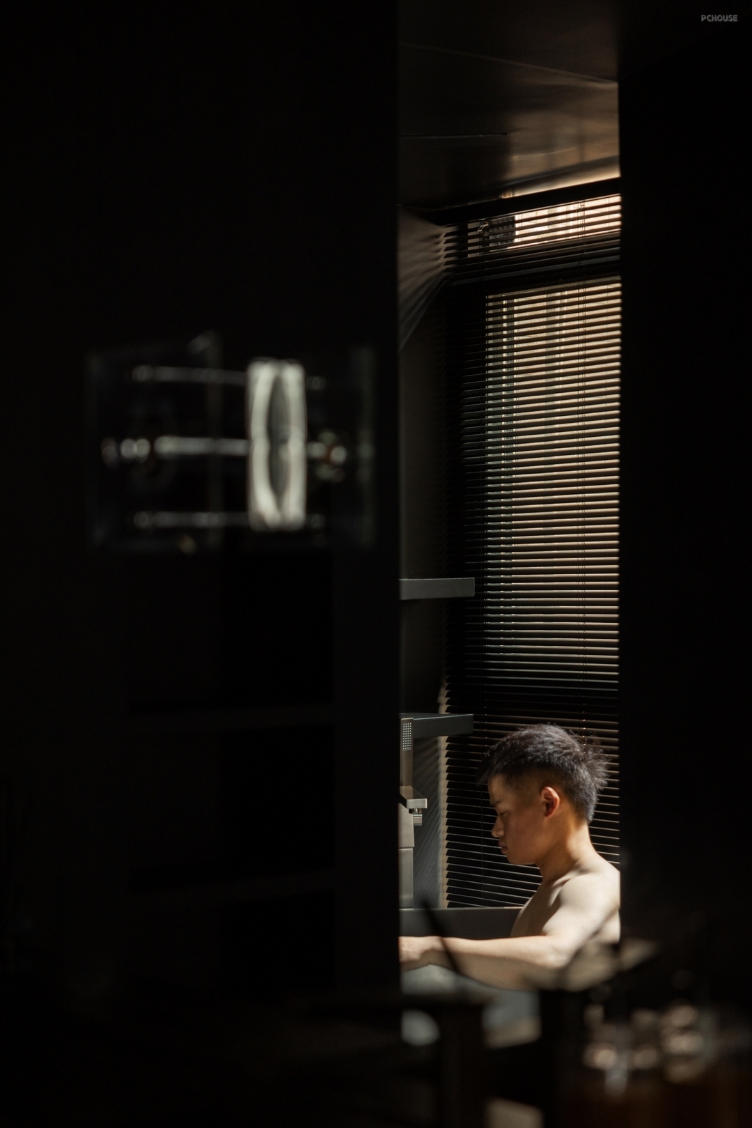 没有多余的色彩,只有那几束巧妙投下的光线,如同温柔的笔触,为这场生活叙事赋予一丝柔和的修辞,在黑色的绸缎上勾勒出细腻的纹理。