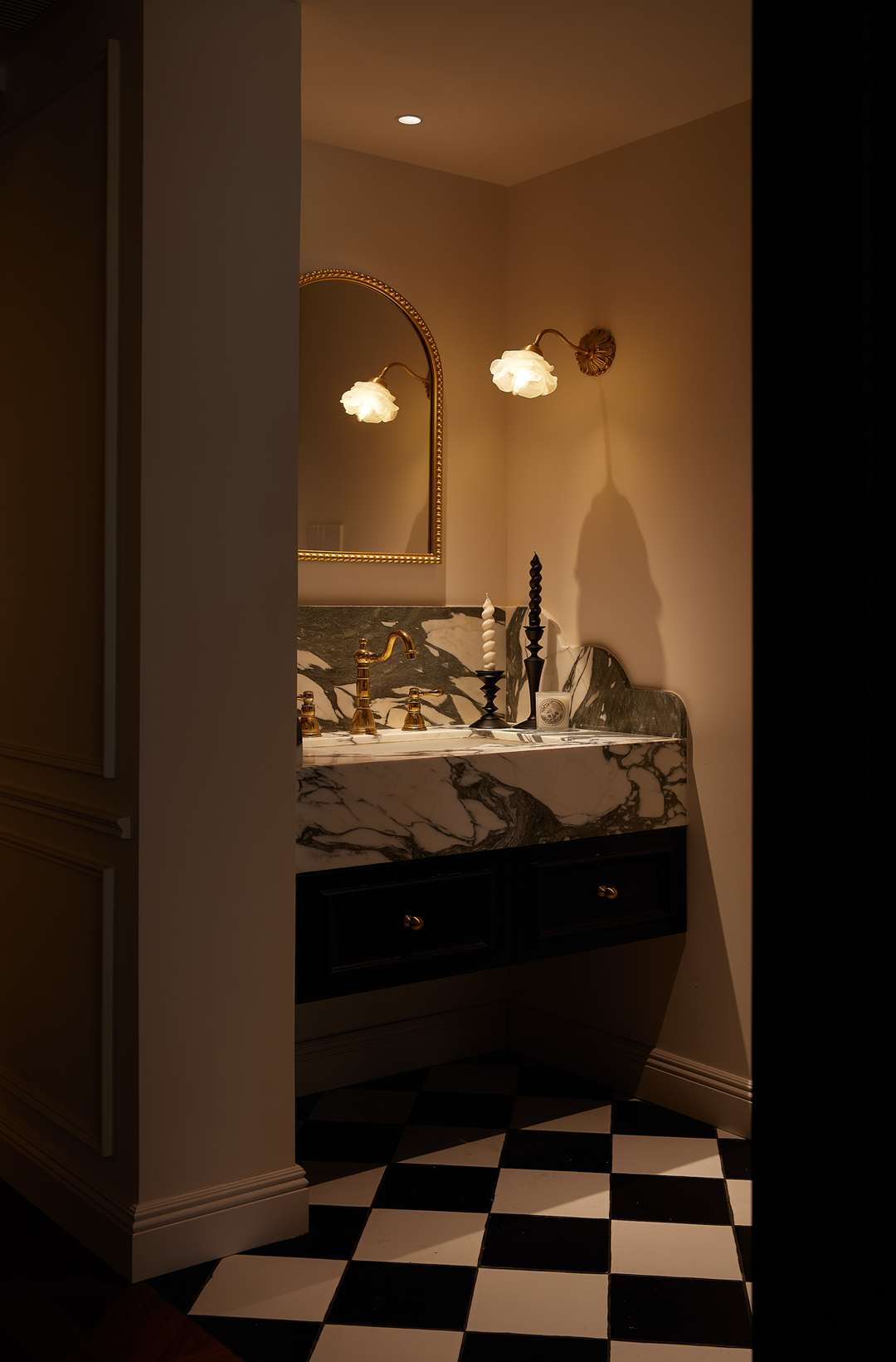 The texture of the space begins to mellow, the charm of time is catalyzed by the warm lighting, and the marble countertop is classic and engraved for eternity, this is a world that will not be forgotten by time.