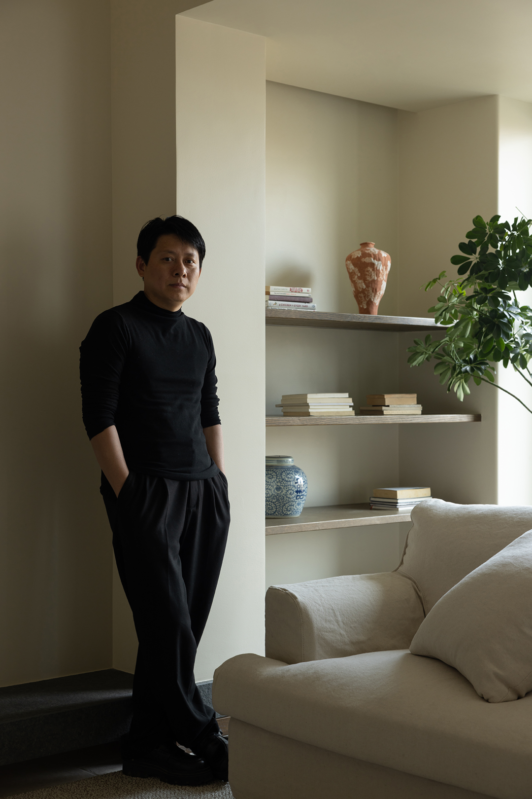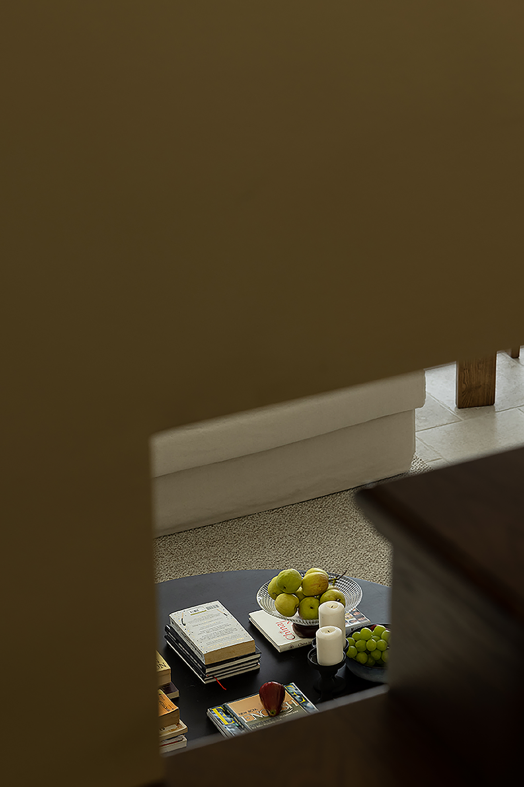 留白让每个褶皱都暗藏生活的脚本——棉麻温柔的触感让沙发随时都有陷入的“危险”,手作陶花器静待新鲜的花枝,深色面的茶几像幕布一样上演着此刻的生活状态,所有物件都在等待故事的自然生长。