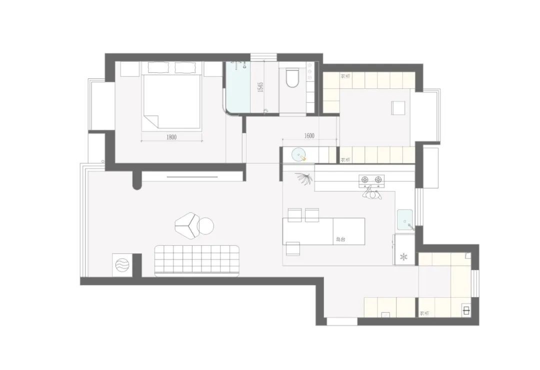 改造后平面布局图 将户型重新规划调整,主要改造点在厨房和卫生间两个空间。