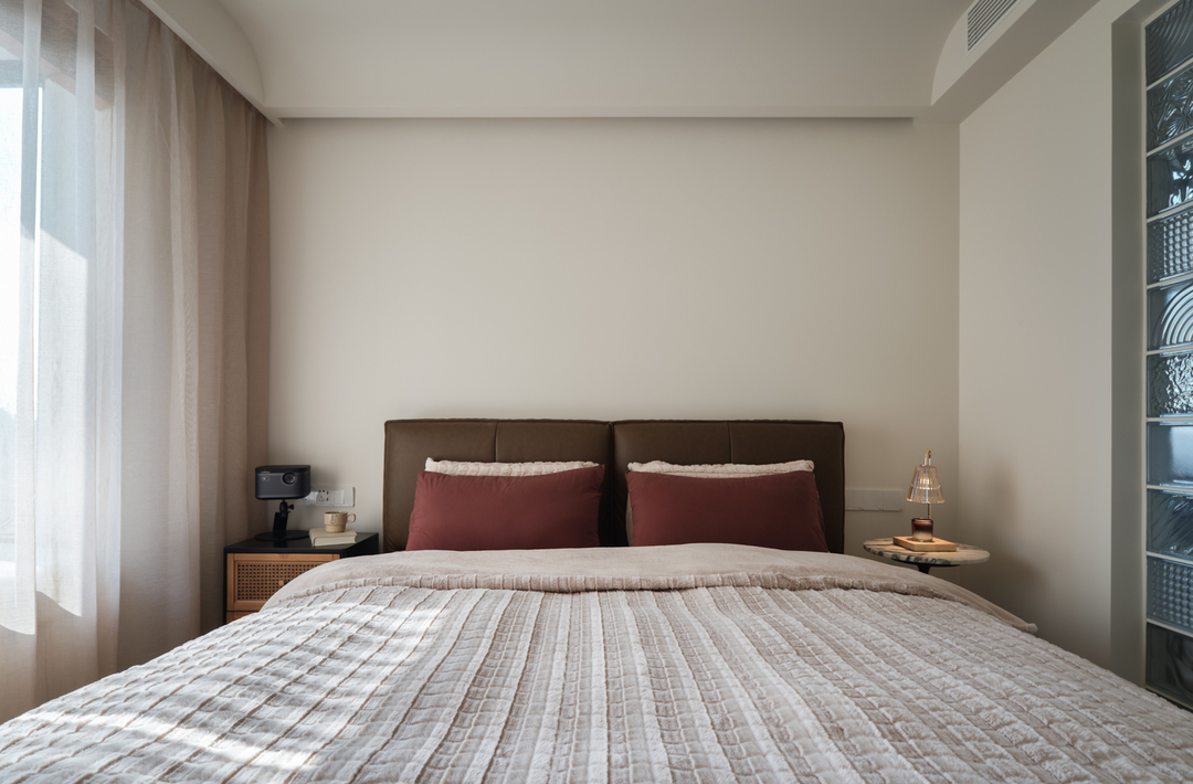 卧室一面墙,采用优美的弧形过渡,展现艺术感的造型,提升空间的美观度,打造流畅的空间,更显柔和之美。