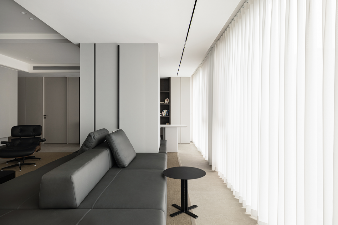 在极简硬装框架下,软装设计遵循克制中见层次的搭配逻辑,在灰白基底中勾勒出视觉温度,构建起多维度的形式呼应: