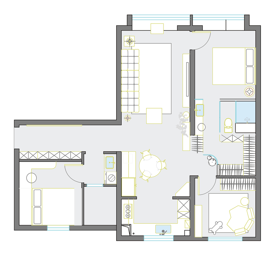 原本入户走廊过长,采光较差,希望可以将次卧,次卫以及走廊之间保留部分墙体,让光透一些出来到走廊空间;